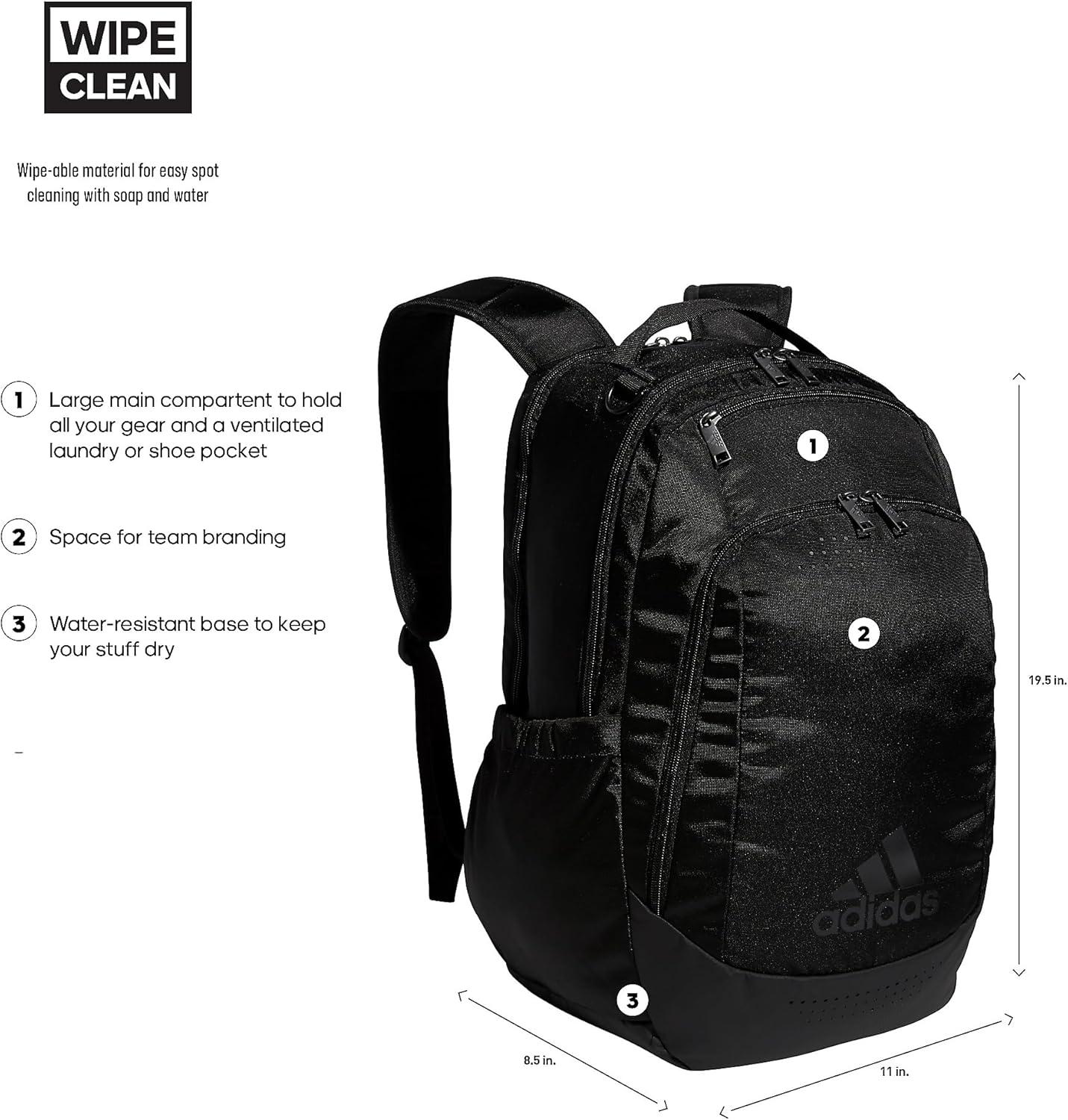 Carry everything you need for practice, travel, or the gym in this versatile adidas backpack. This sturdy athletic backpack serves as an excellent soccer backpack with a main compartment and a separate ventilated shoe garage for wet or muddy items. Its compact size also makes it suitable as a personal item backpack or a carry on backpack for airplanes. This backpack carry on ensures convenience wherever you go. Plus, the inner lining is easy to wipe clean with soap and water.