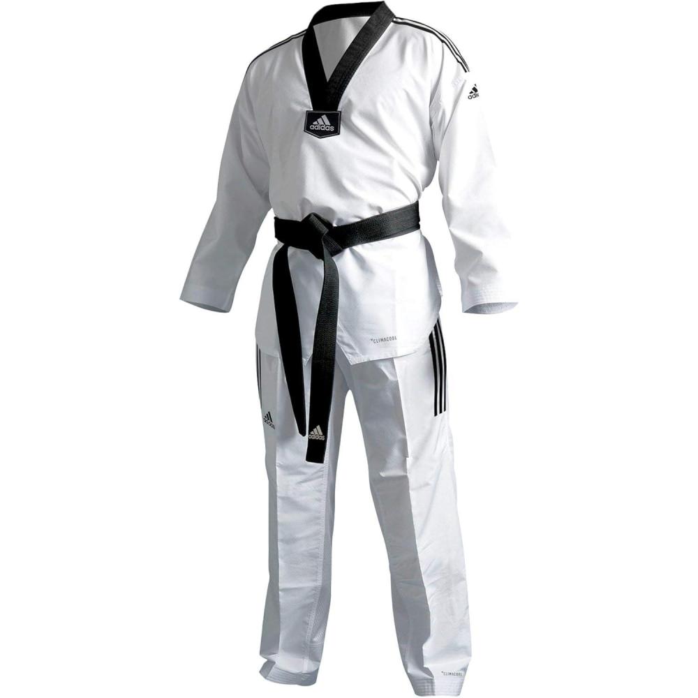 adidas Eco Fighter 3 Taekwondo Black V-Neck Ultralight Sparring Uniform w/ 3 Stripes – 100% Polyester(White)