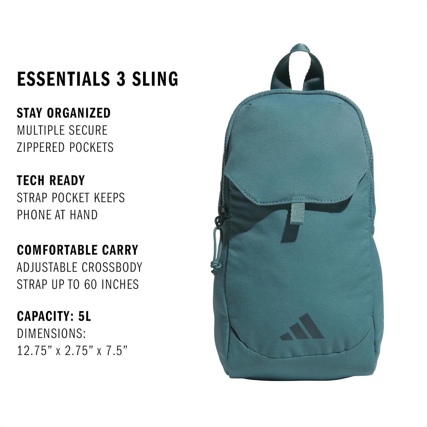 adidas Essentials Sling Small Crossbody Bag for Women and Men (5L), Black/2.0, One Size(Preloved Teal Green/Aurora Green Ivy/3.0)