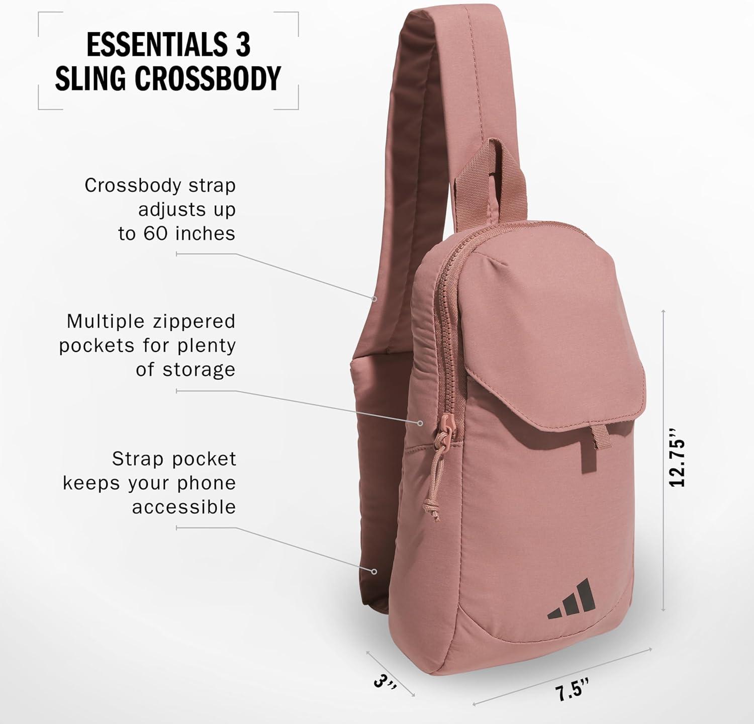adidas Essentials Sling Small Crossbody Bag for Women and Men (5L), Black/2.0, One Size(Warm Clay Pink/3.0)