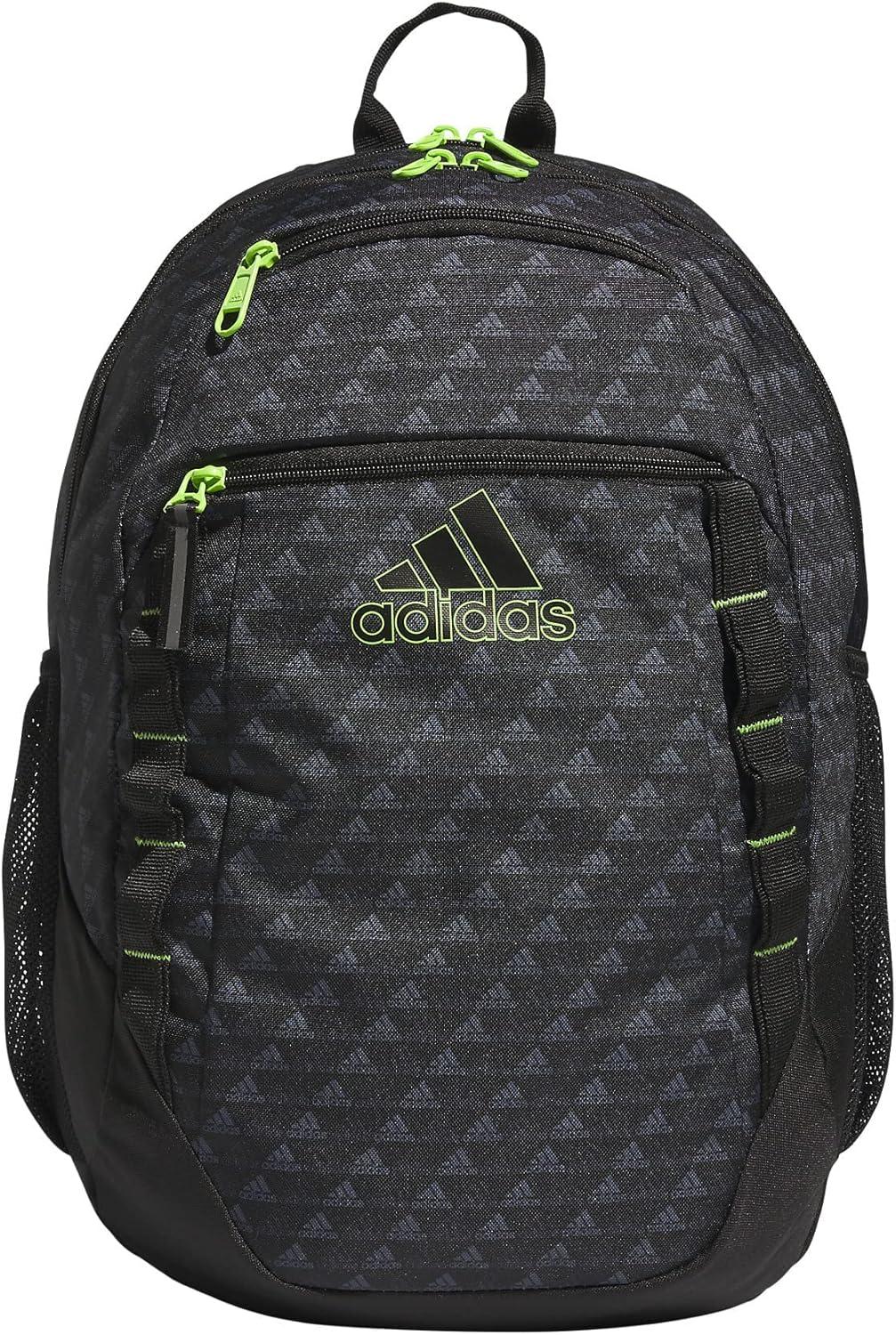 adidas Excel Backpack + Insulated Lunch Bag, Black/White + Black/White, OSFA(Bos Mini Monogram Black/Lucid Lime Green)