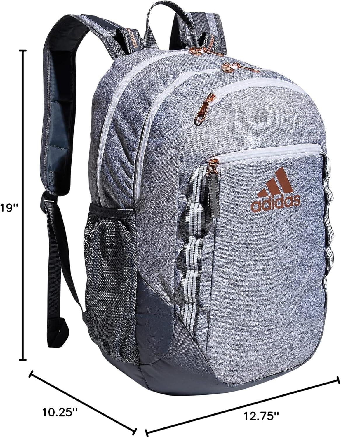 adidas Excel Backpack + Insulated Lunch Bag, Black/White + Black/White, OSFA(Jersey Grey/Onix Grey/Rose Gold)