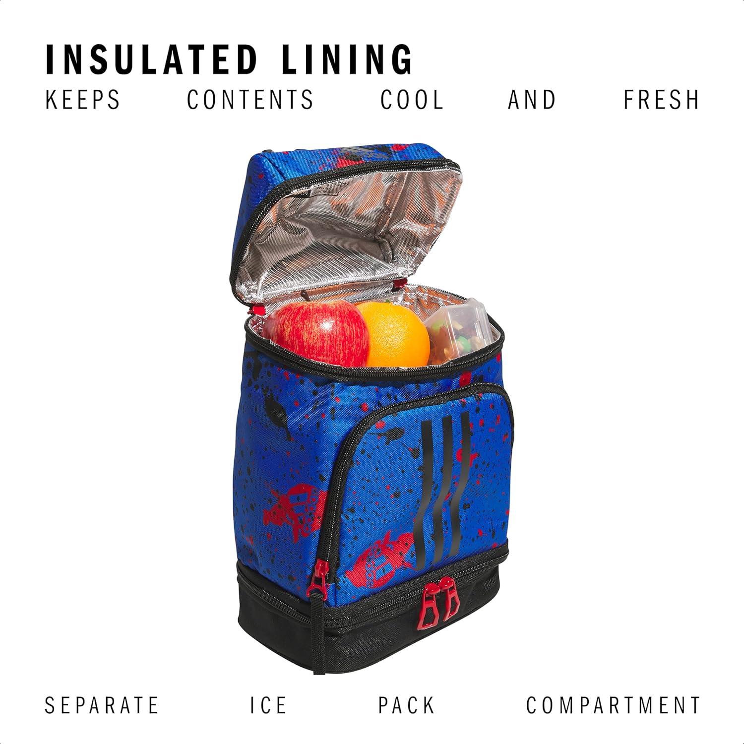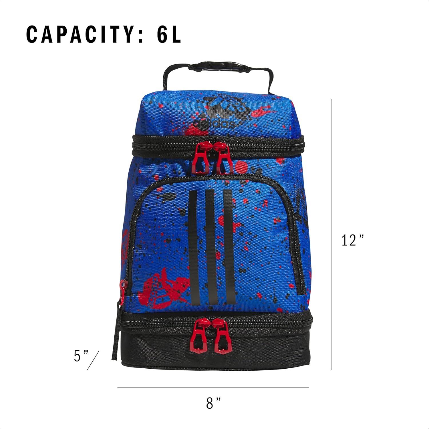 adidas Excel Insulated Lunch Bag, Cooler with Zipper, Pocket for Ice Pack, and Clip, Temperature Control Insulation(Splatter Bright Royal/Black/Better Scarlet)