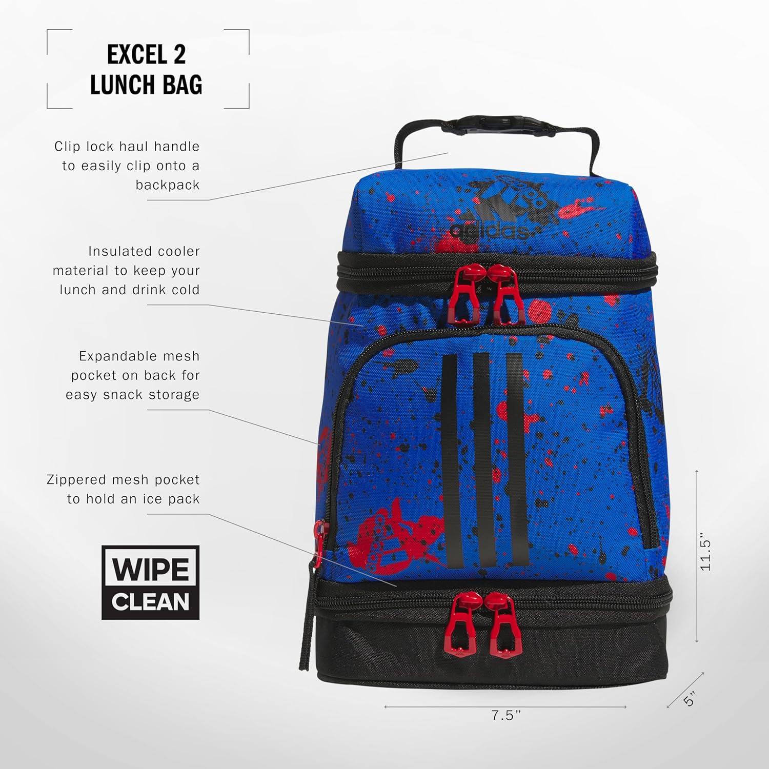 adidas Foundation Backpack + Excel Insulated Lunch Bag, Splatter Blue + SplatterBlack/Scarlet, OSFA(Splatter Blue + Splatterblack/Scarlet)
