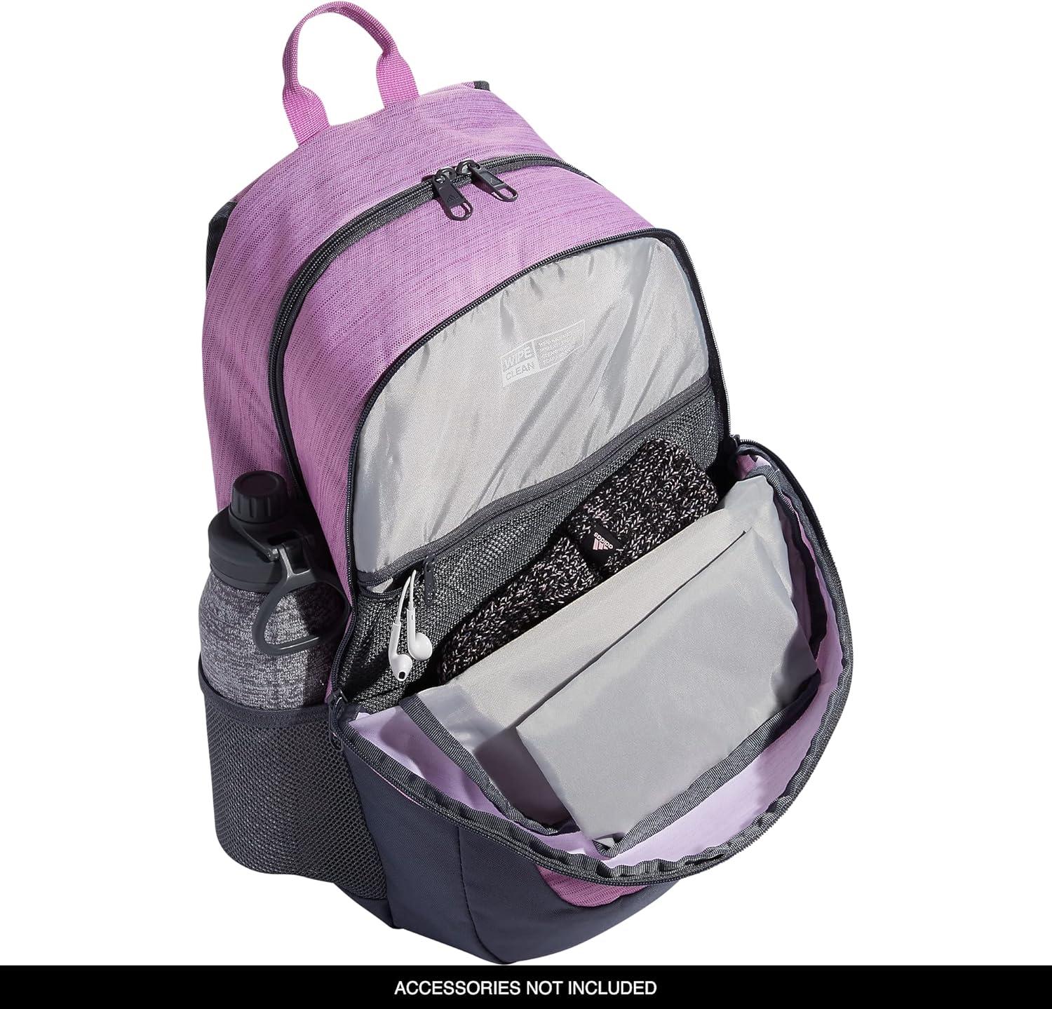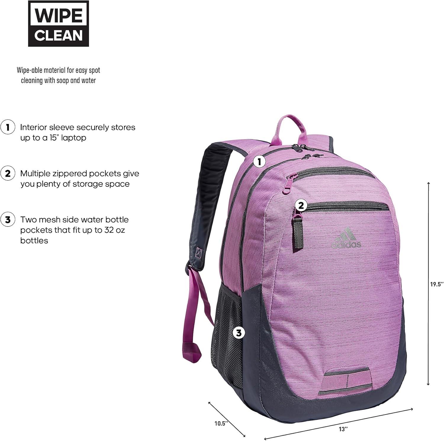 A new season calls for a new backpack to carry your essentials. This adidas sports backpack has ample space for books, binders, and folders. As a multi pocket backpack, there's room to store up to a 16-inch laptop in the interior sleeve, making it suitable as a womens or mens laptop backpack or work backpack. Multiple zip pockets hold your phone, keys, pens, and other small items. This athletic backpack functions as a womens and mens travel backpack, providing versatile use for various occasions.