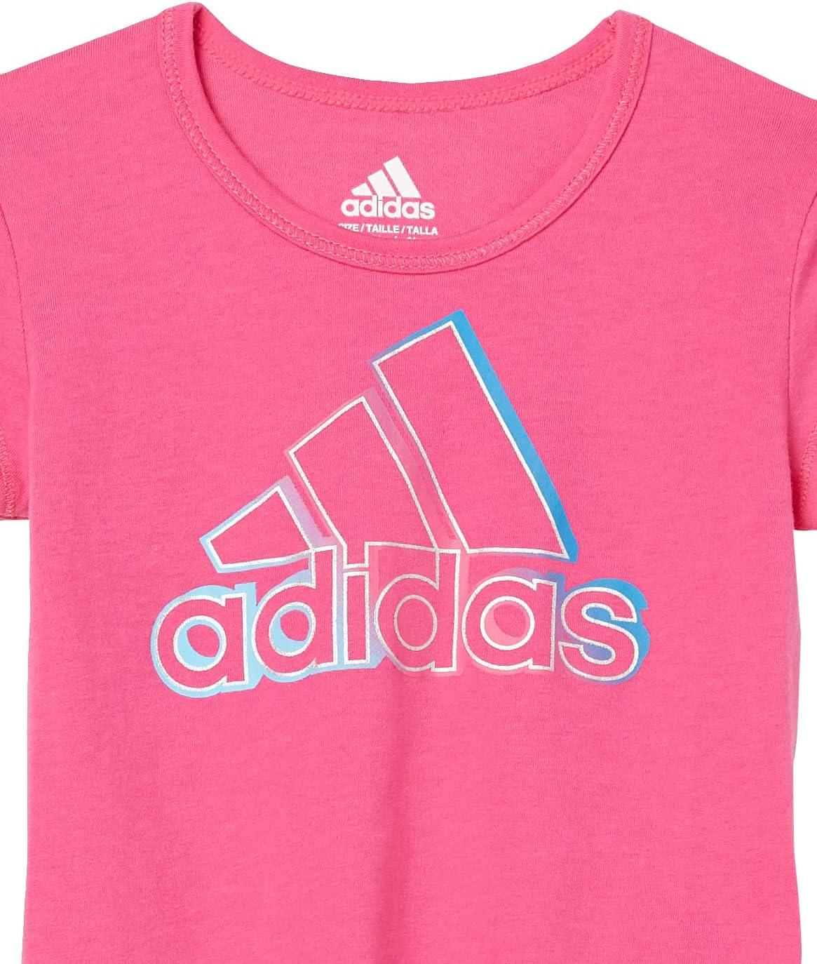 adidas girls 2 Piece Cotton Tee 3-stripe Tight SetLeggings(Pink)
