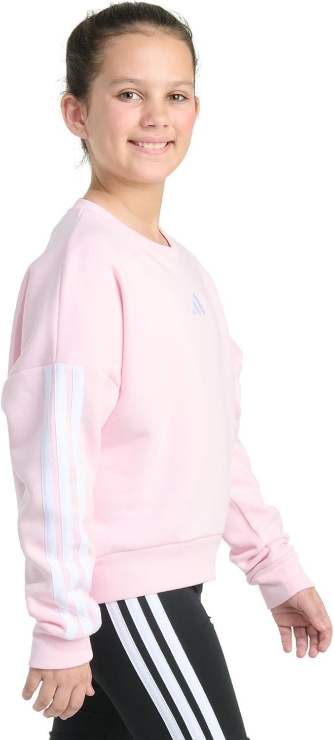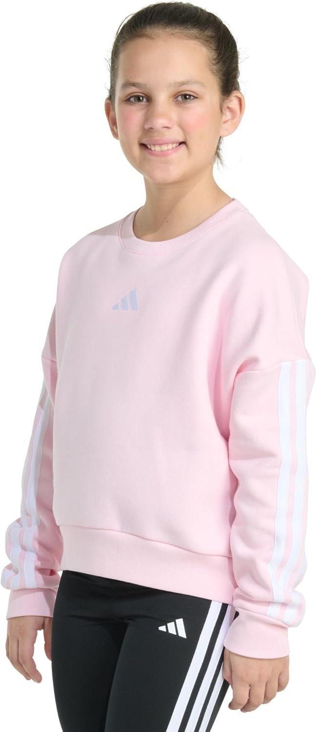 adidas Girls’ Fleece 3-Stripe Crewneck Sweatshirt(Clear Pink)