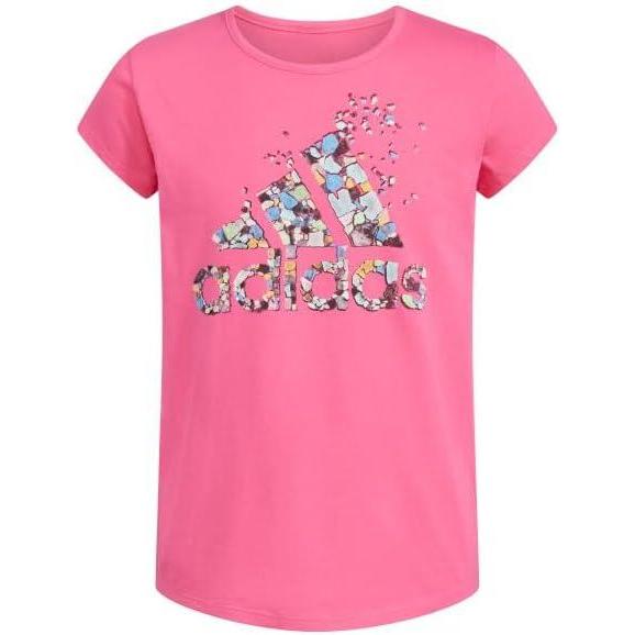 adidas Girls’ Short Sleeve Cotton Scoop Neck Tee T-Shirt(Pink)