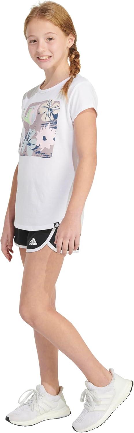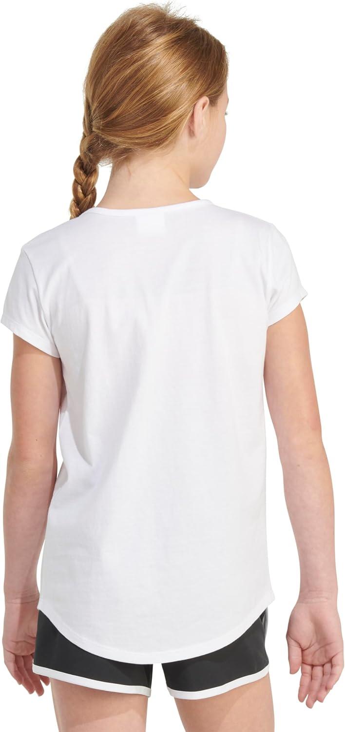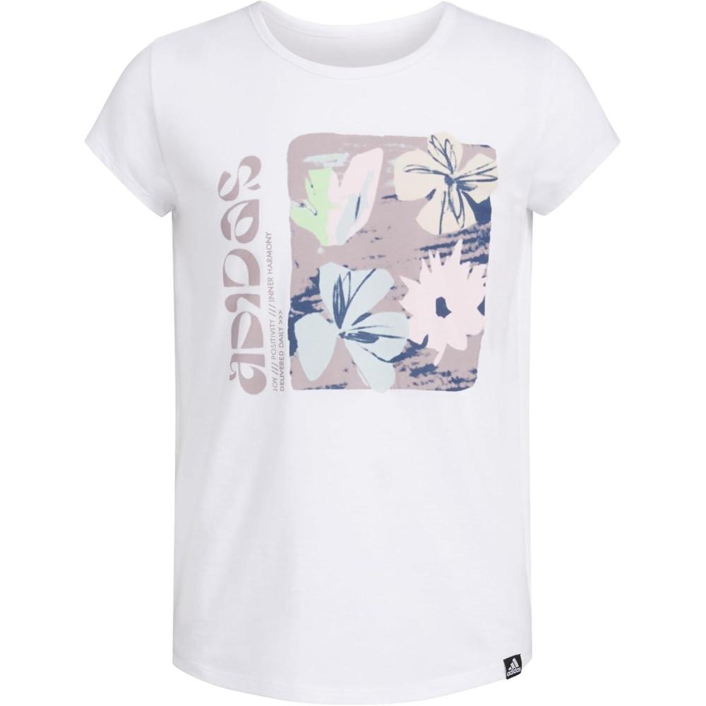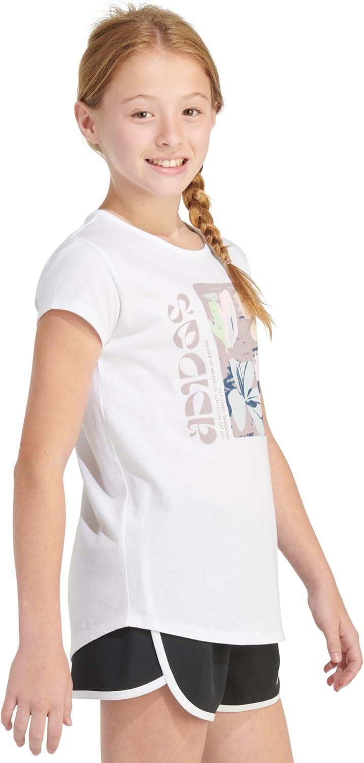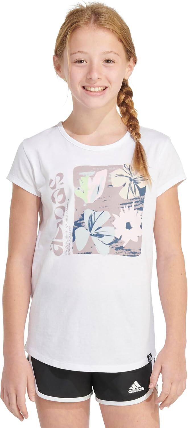 adidas Girls’ Short Sleeve Cotton Scoop Neck Tee T-Shirt(White Floral)