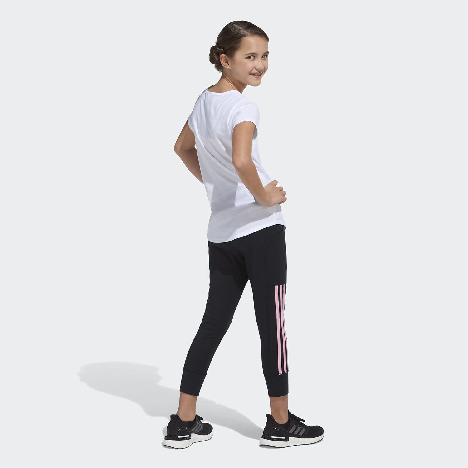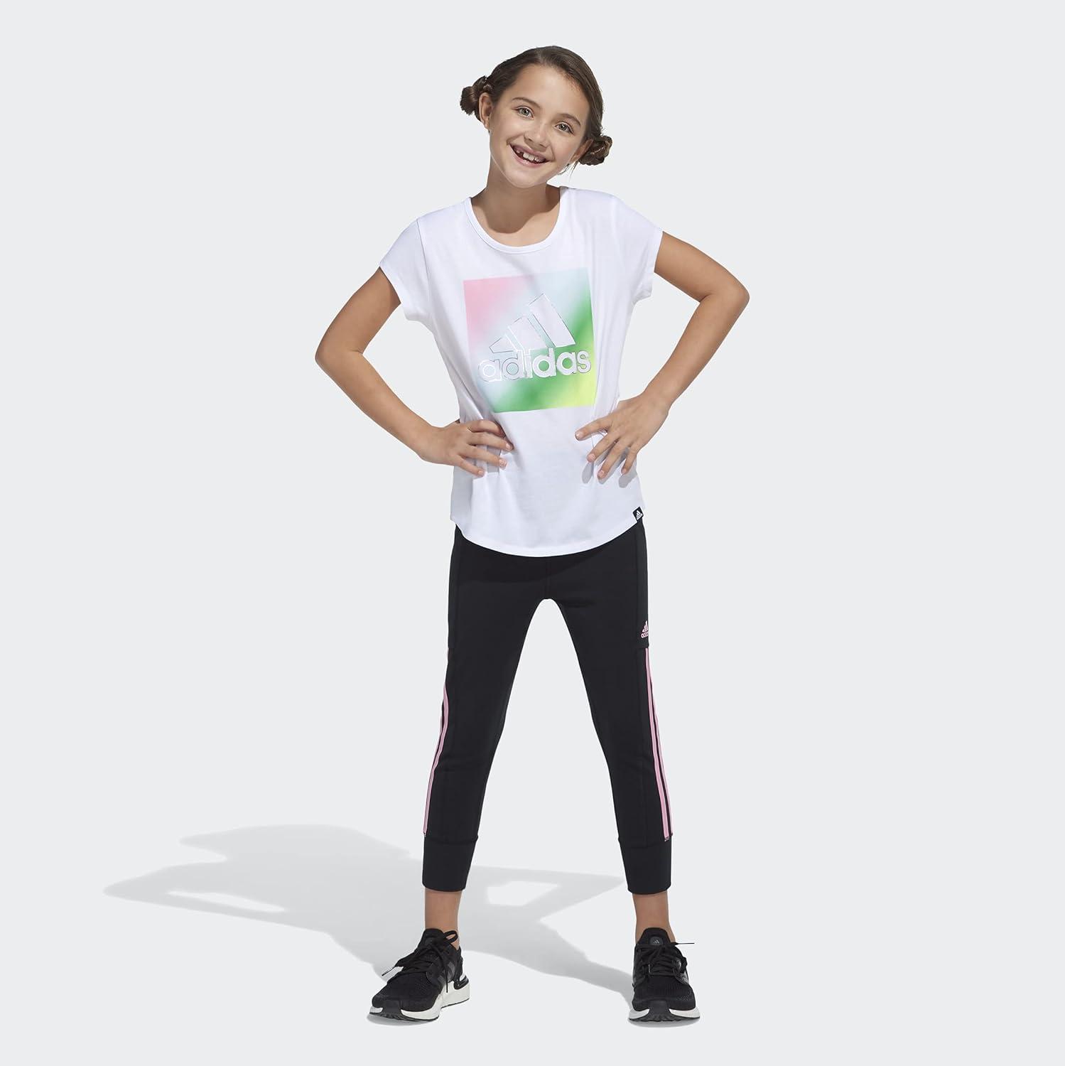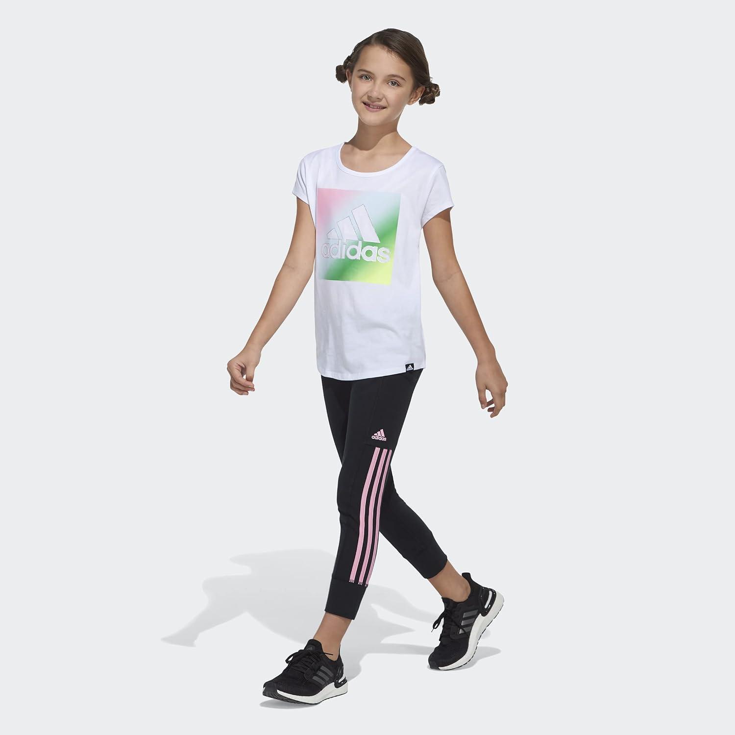 adidas Girls’ Short Sleeve Cotton Scoop Neck Tee T-Shirt(White With Multicolor)