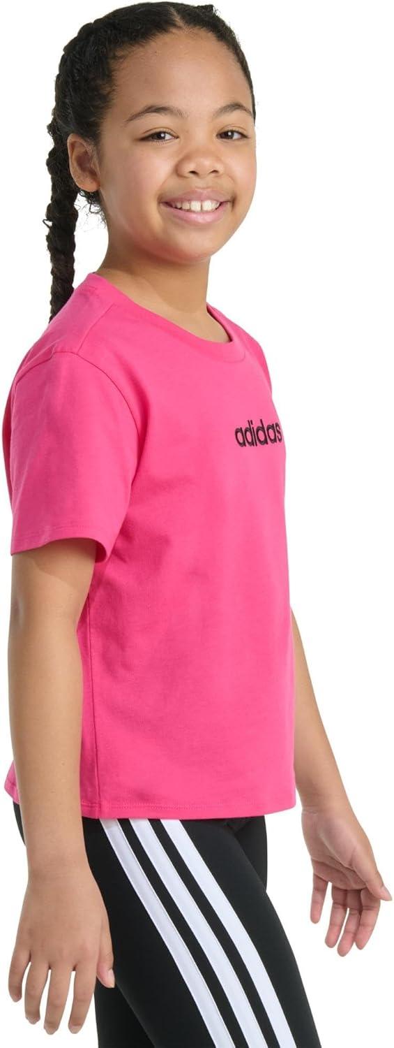 adidas Girls’ Short Sleeve Embroidered Tee(Shock Pink)