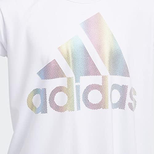 adidas Girls’ Short Sleeve Rainbow Scoop Neck Tee T-Shirt(White)