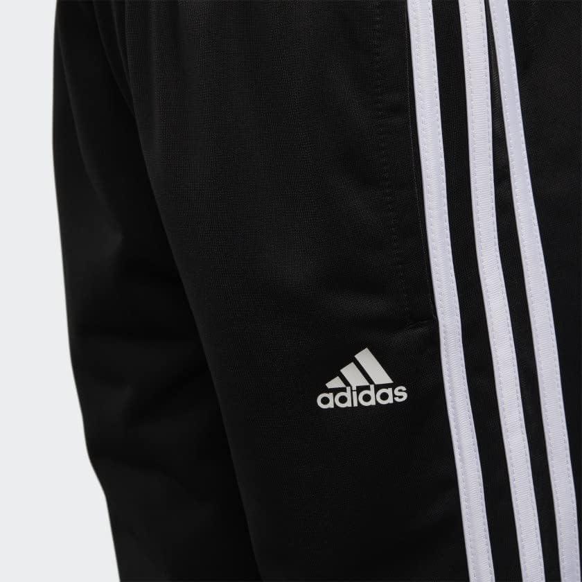 The tricot jogger features detached rib waistband and cuffs, on seam pockets and dazzle applied stripes down side seams. Heat transfer Adidas brand mark on front left hip.