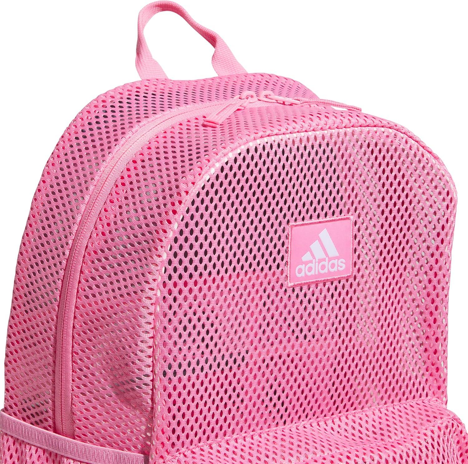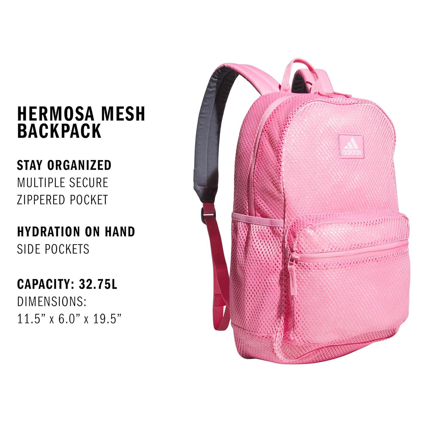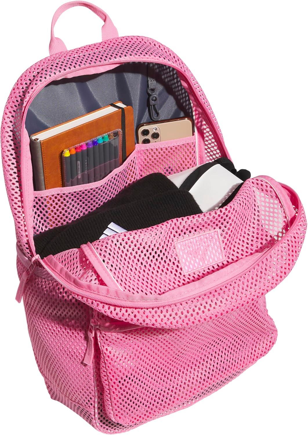 adidas Hermosa Mesh Backpack, See-Through Transparent Clear Festival Bag, Black/White/2.0, One Size(Bliss Pink/2.0)