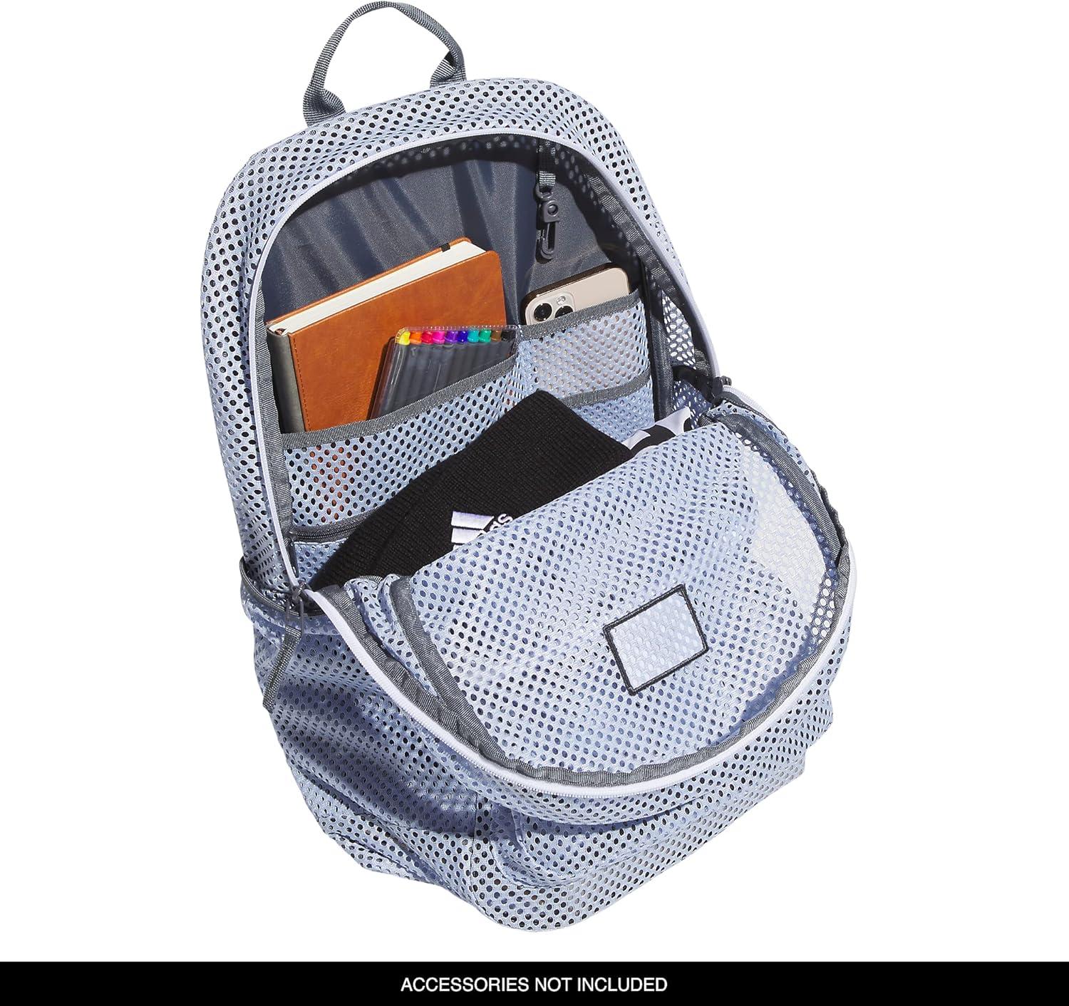 adidas Hermosa Mesh Backpack, See-Through Transparent Clear Festival Bag, Black/White/2.0, One Size(Blue Dawn/Onix Grey/2.0)