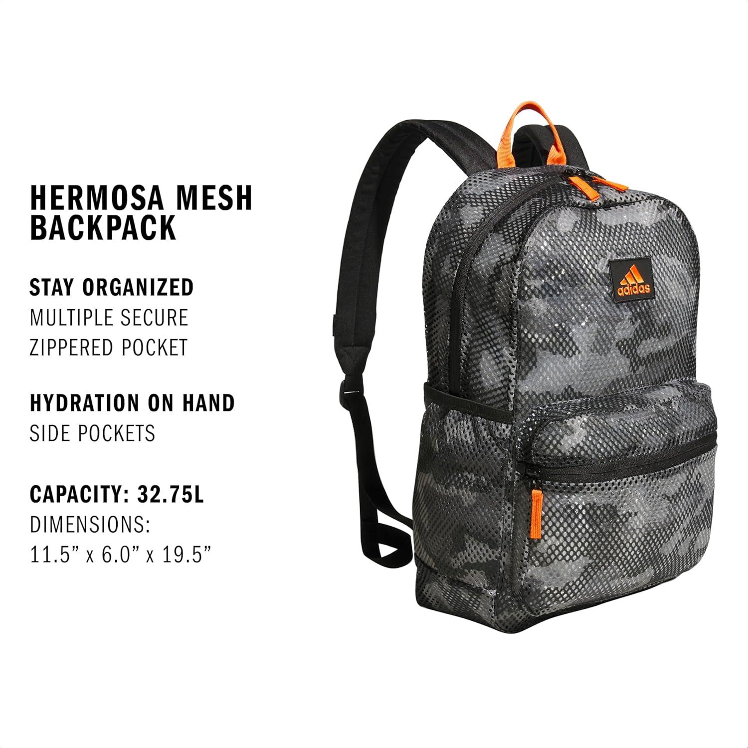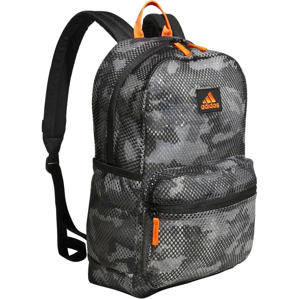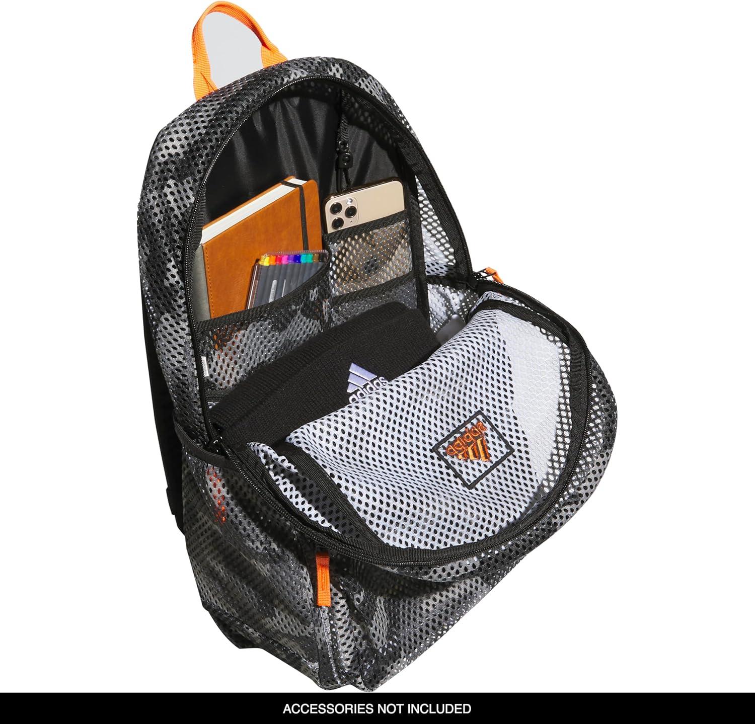 adidas Hermosa Mesh Backpack, See-Through Transparent Clear Festival Bag, Black/White/2.0, One Size(Camouflage Carbon/Impact Orange/Black/2.0)
