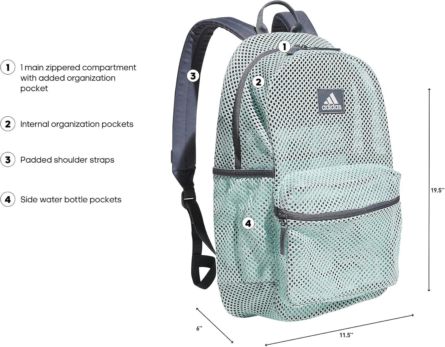 adidas Hermosa Mesh Backpack, See-Through Transparent Clear Festival Bag, Black/White/2.0, One Size(Semi Flash Aqua Blue/Onix Grey/2.0)
