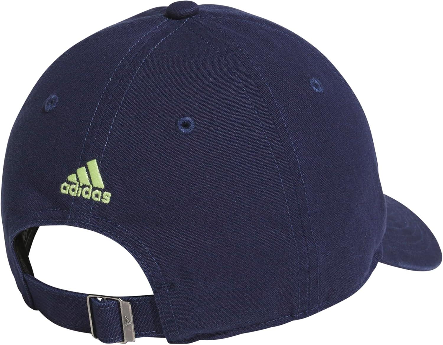 adidas Kid’s Baseball Cap for Boys and Girls – Youth Washed Cotton Adjustable Hat – Ultimate Saturday(Dark Blue/Pulse Lime Green)