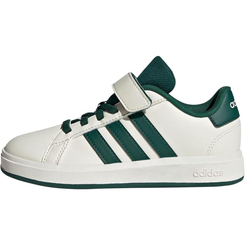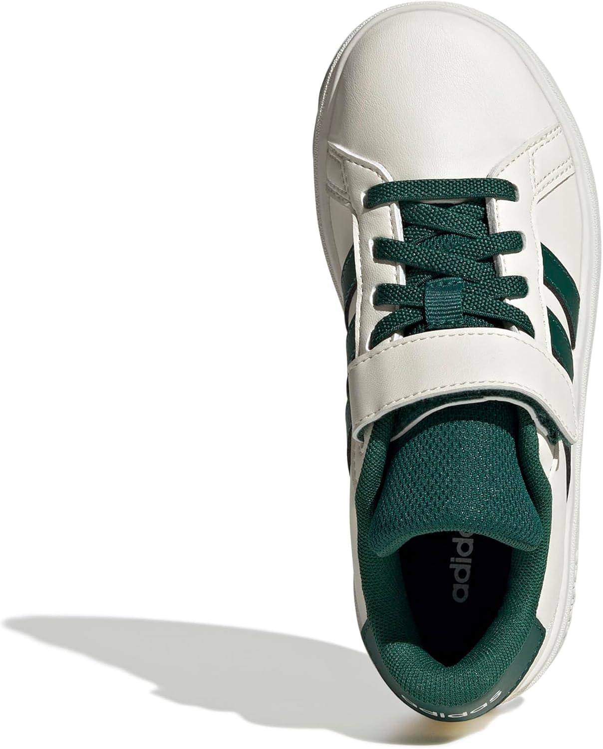 adidas Kids’ Grand Court 2.0 Elastic Lace & Strap Shoes(Off White/Collegiate Green/Black)
