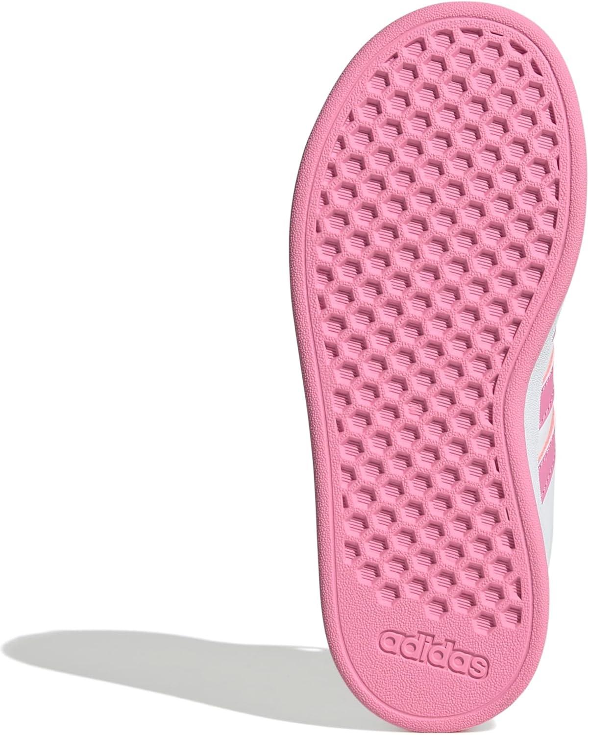 adidas Kids’ Grand Court 2.0 Elastic Lace & Strap Shoes(White/Bliss Pink/Black)