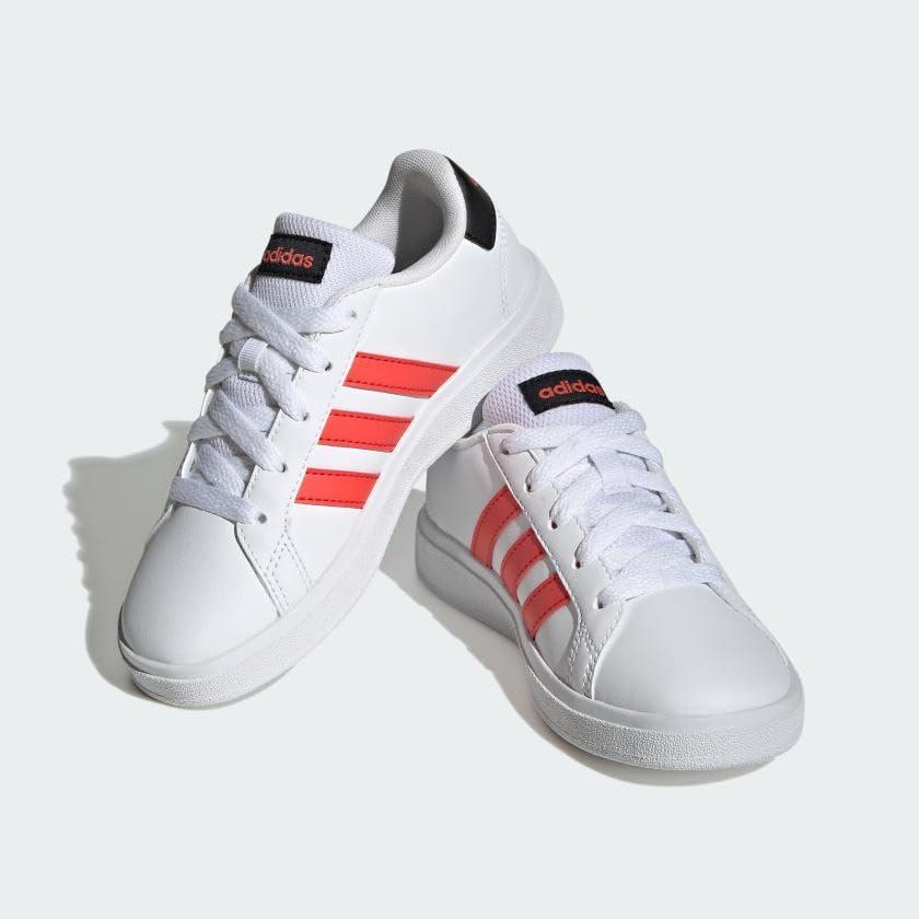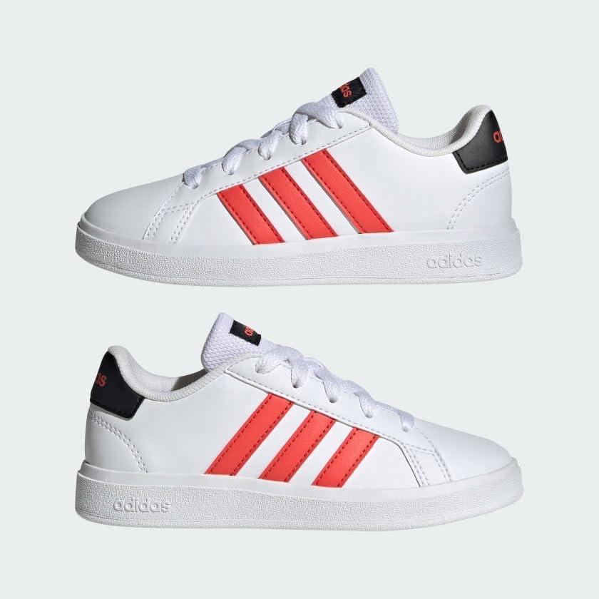 adidas Kids’ Grand Court 2.0 Sneakers(Cloud White/Bright Red/Core Black)
