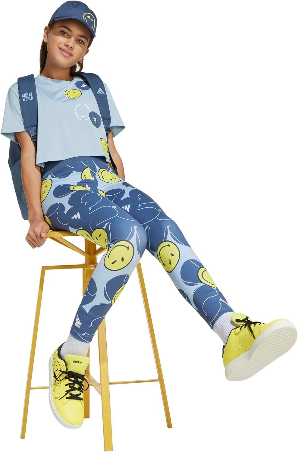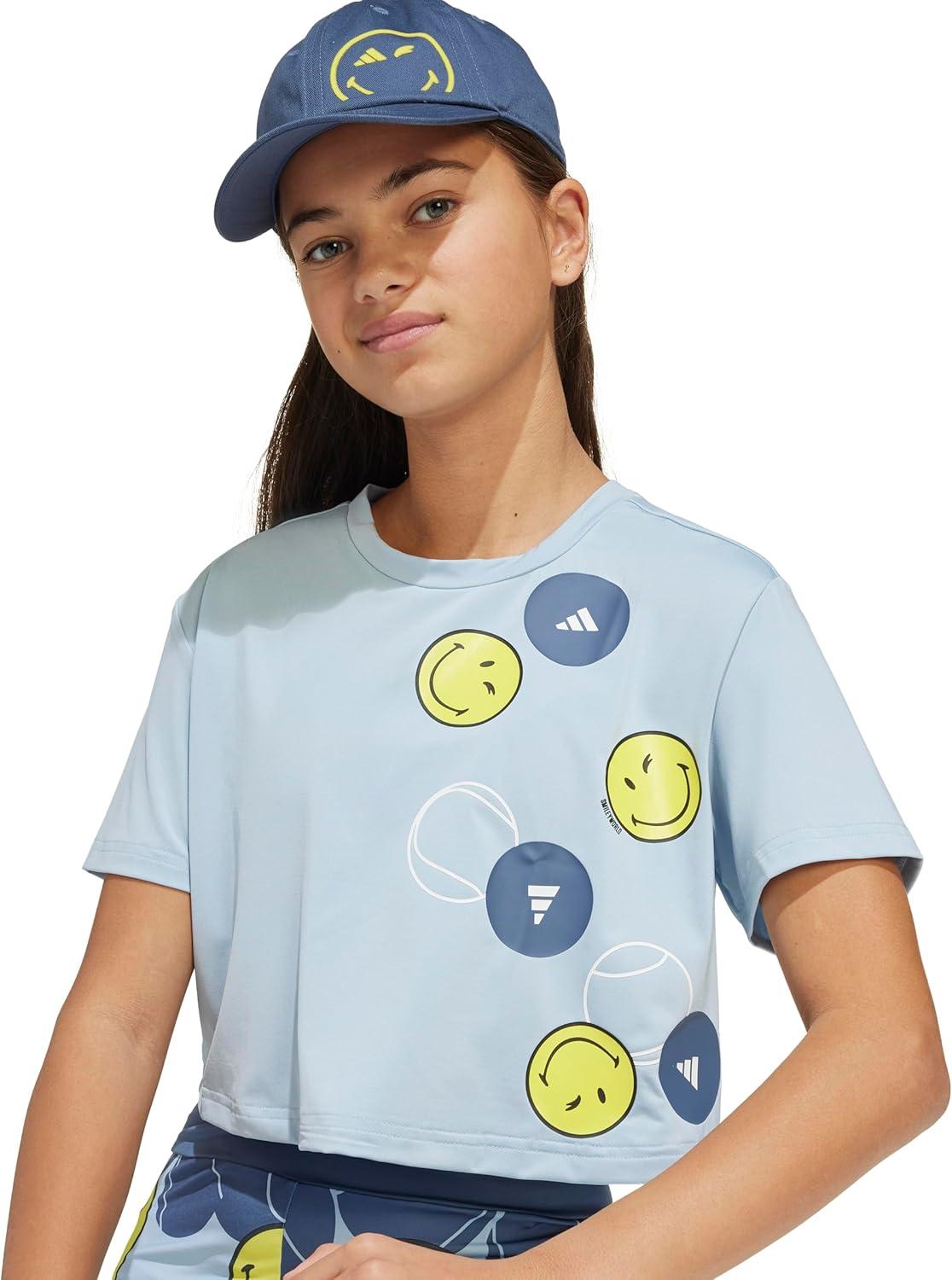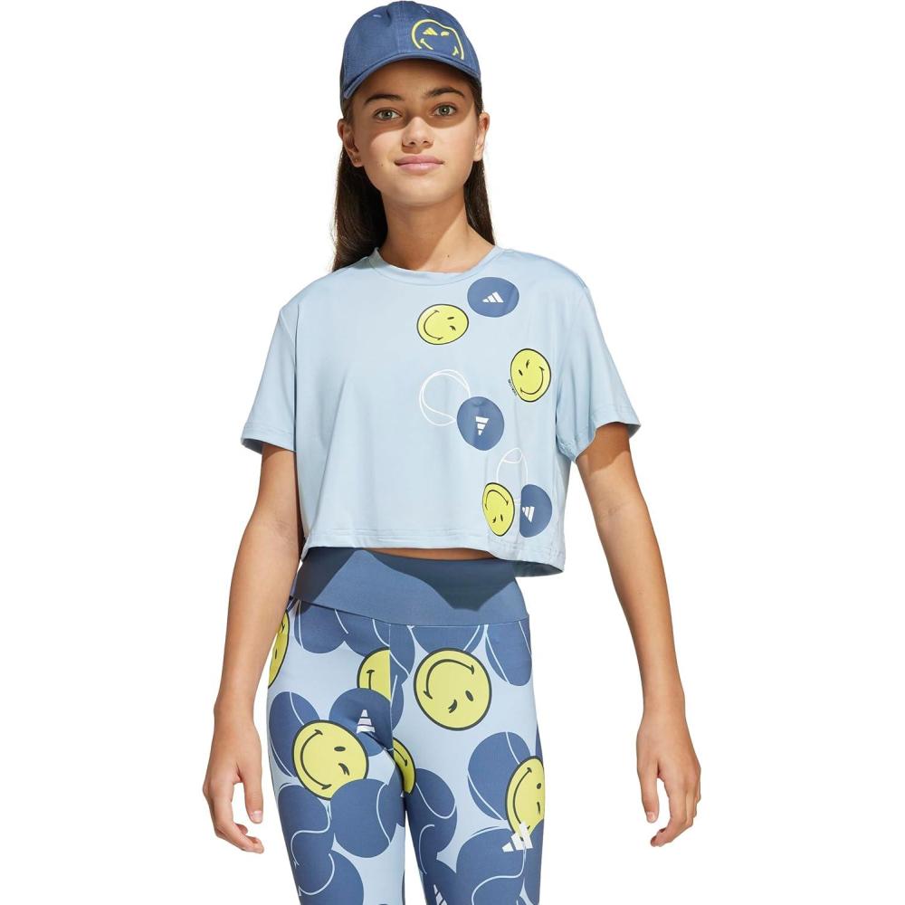 adidas Kids’ Smiley World T-Shirt(Wonder Blue/Preloved Ink/Bright Yellow/White)
