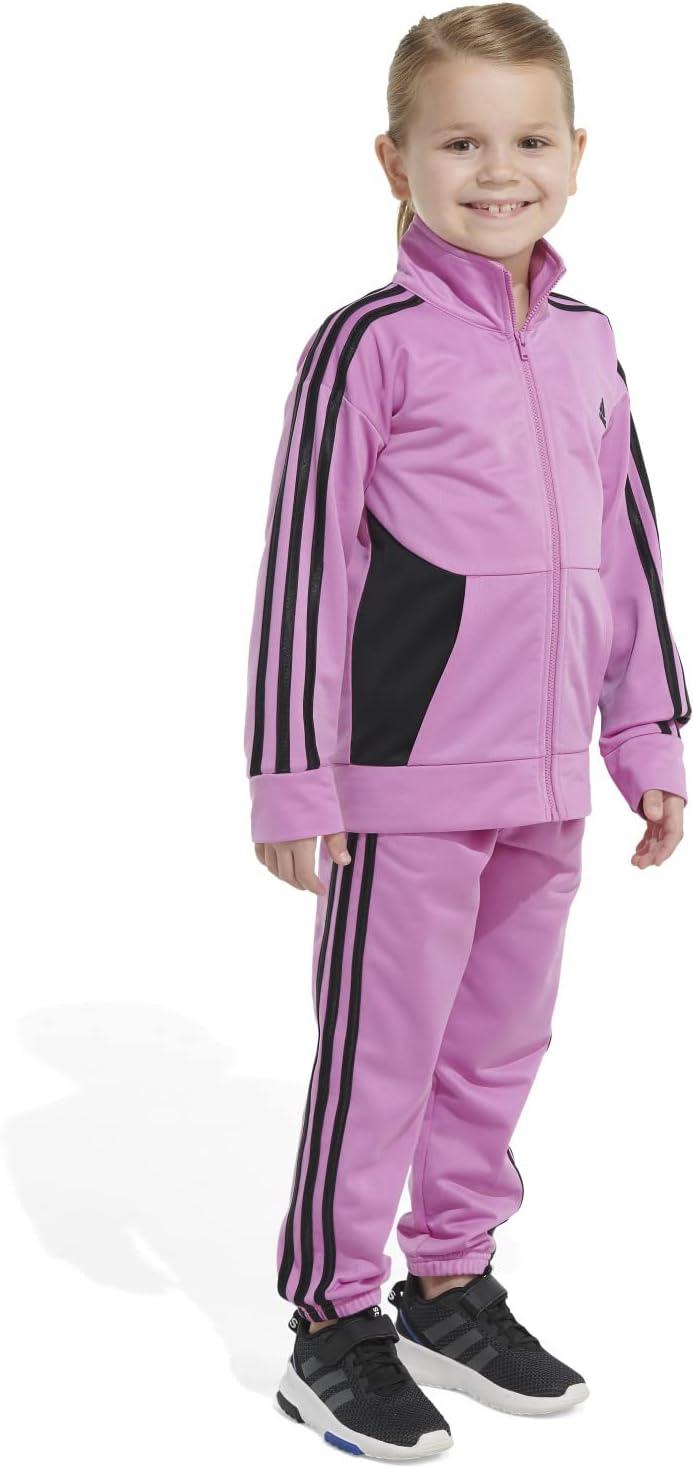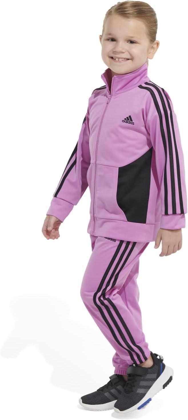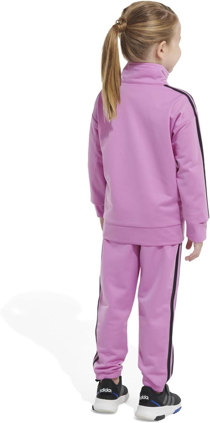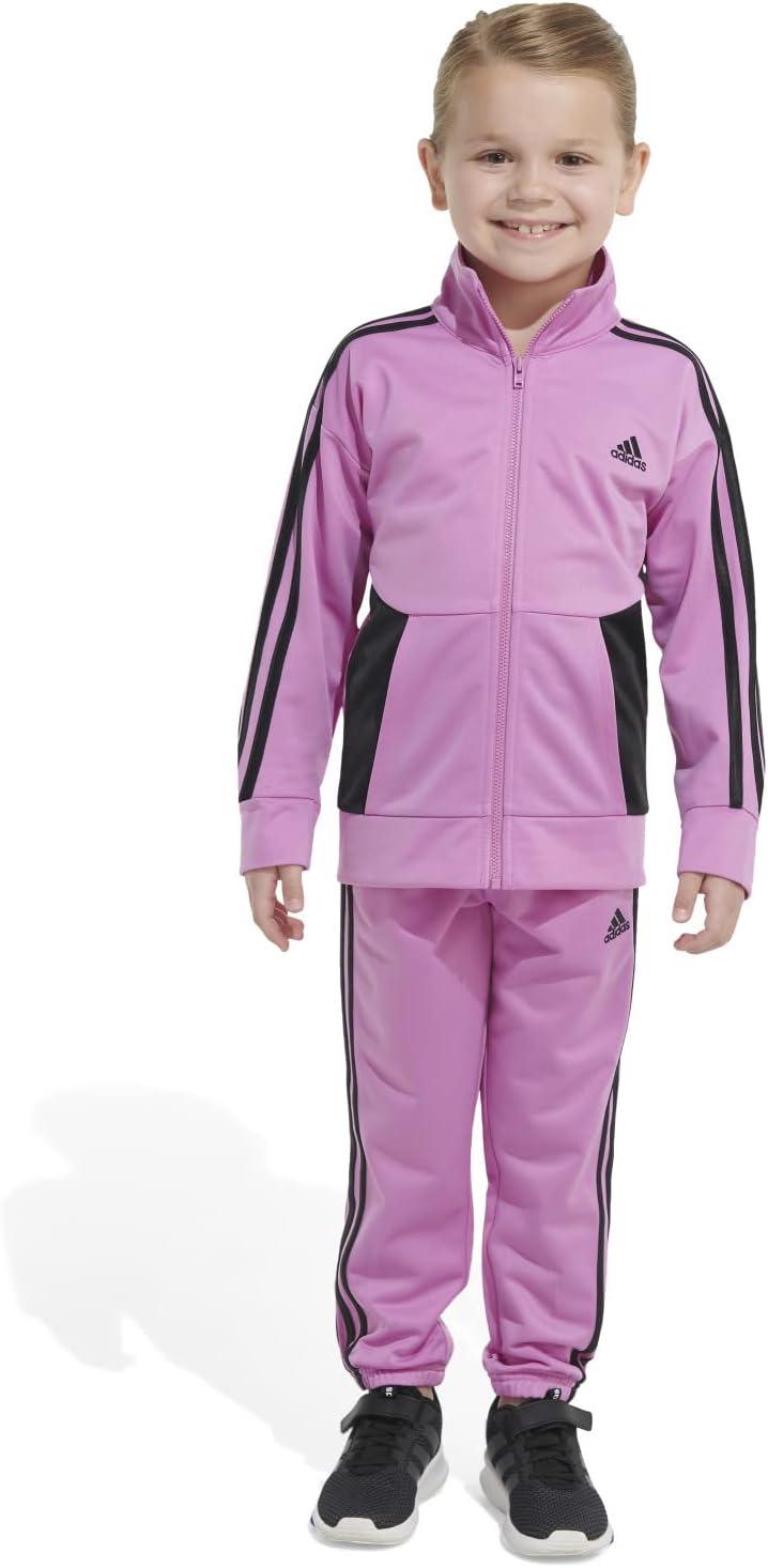 adidas Little Girl’s Zip Front Classic Tricot Jacket and Joggers Set(Pulse Lilac With Black)