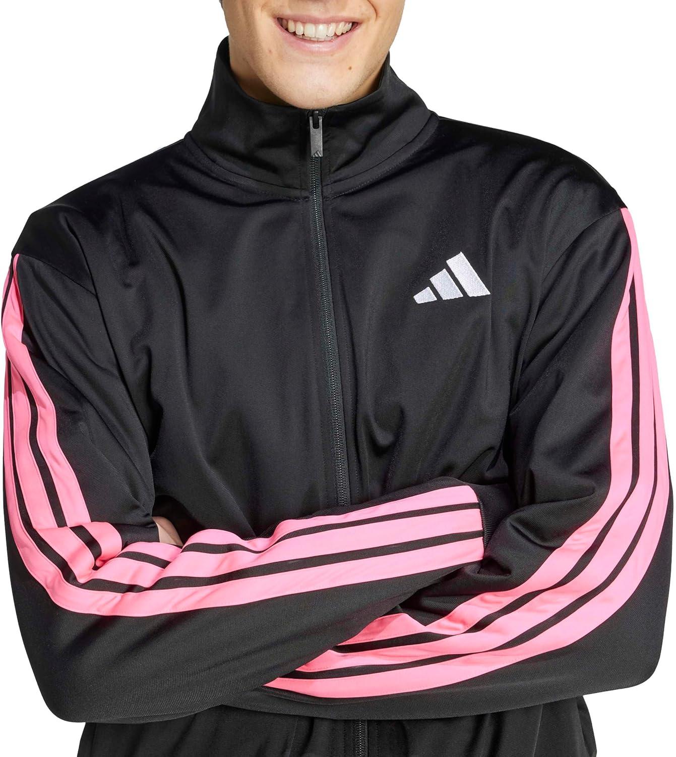 adidas Men’s 3-Stripes Tricot Track Top(Black/Lucid Pink)