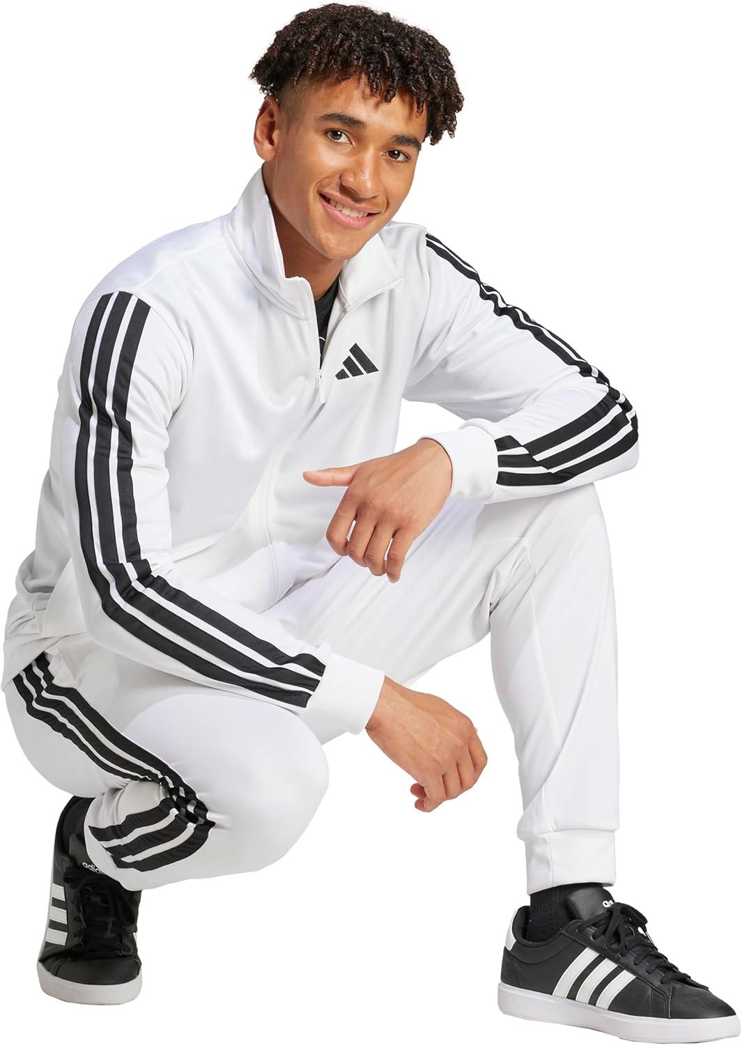 adidas Men’s 3-Stripes Tricot Track Top(White)