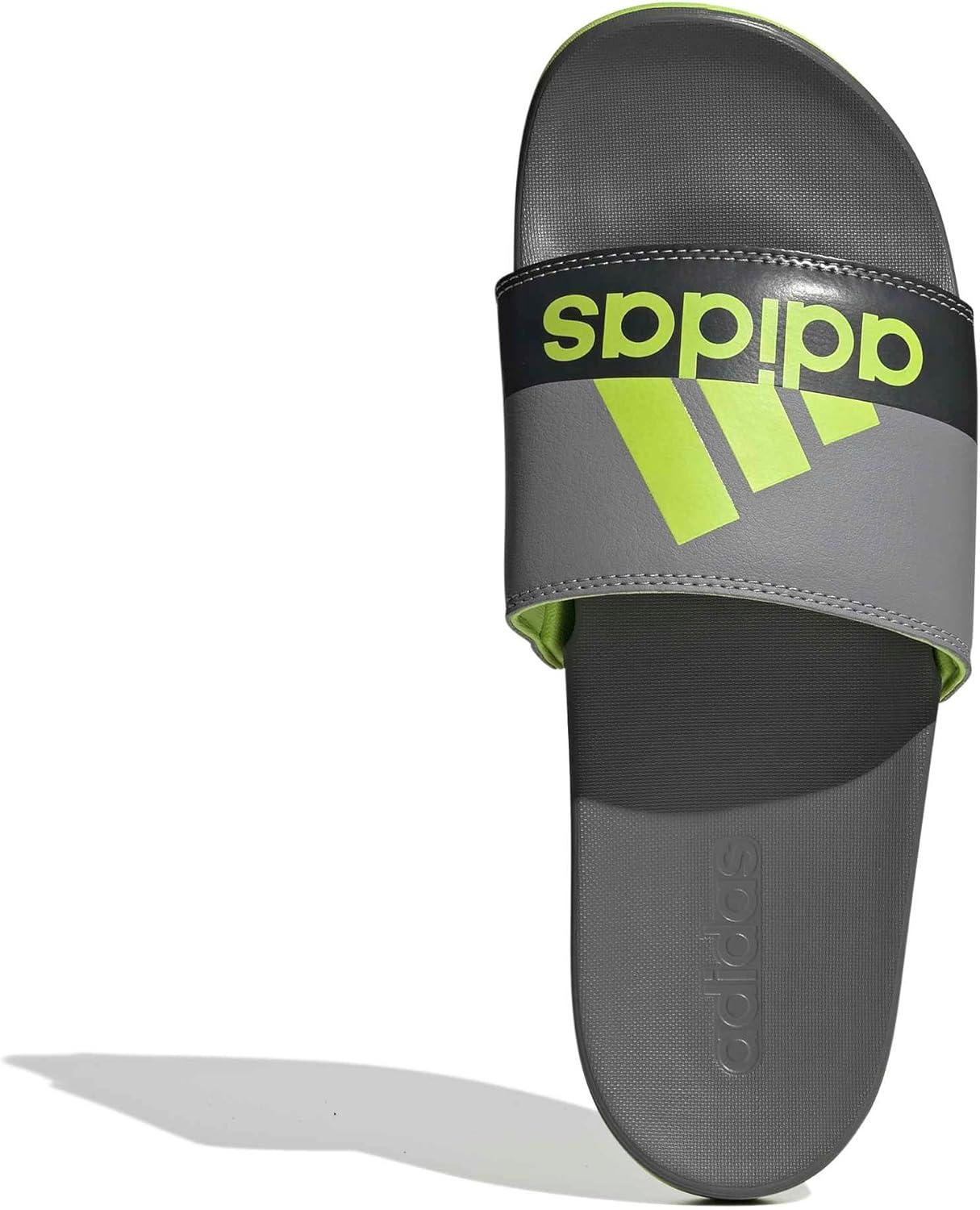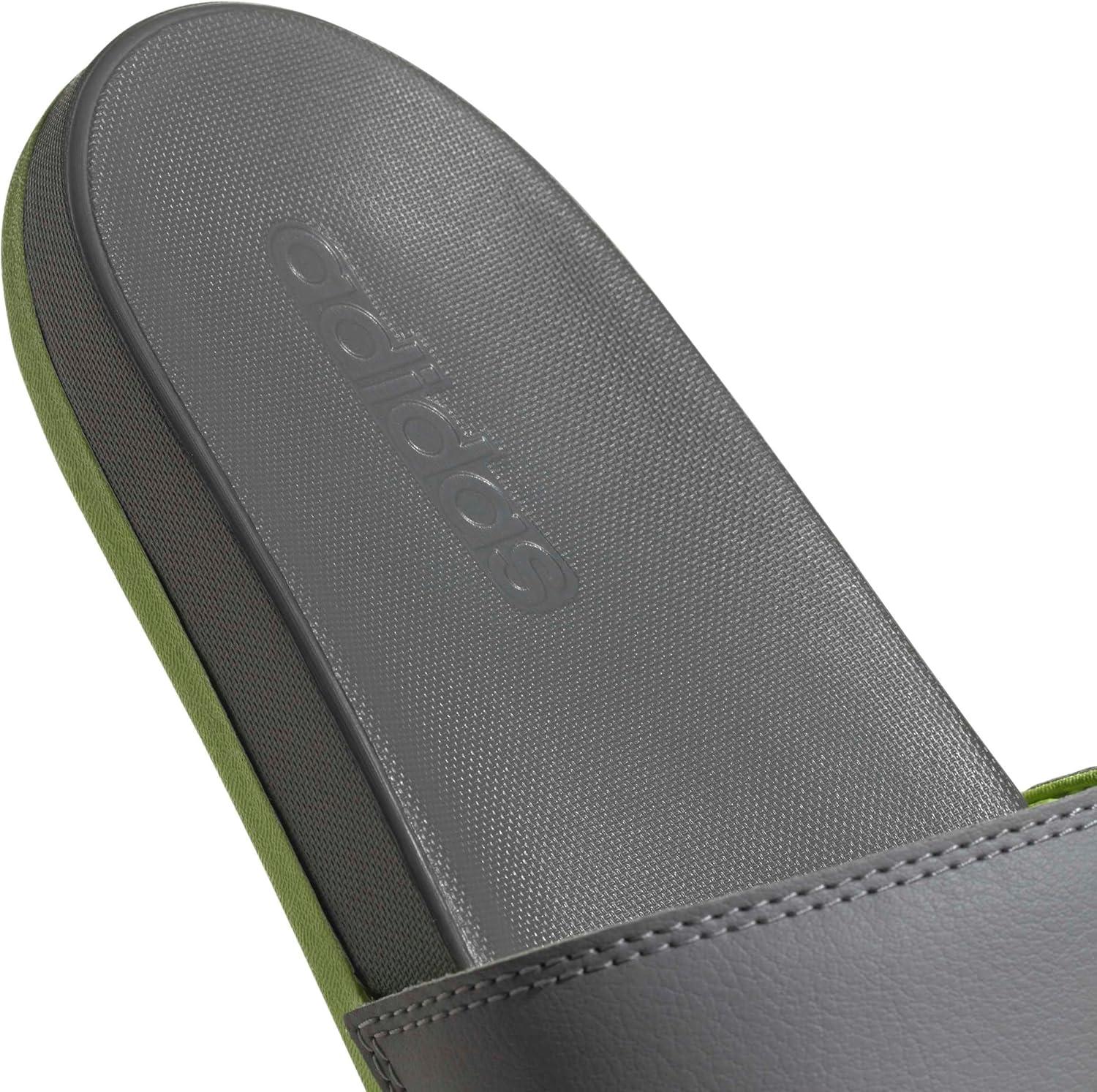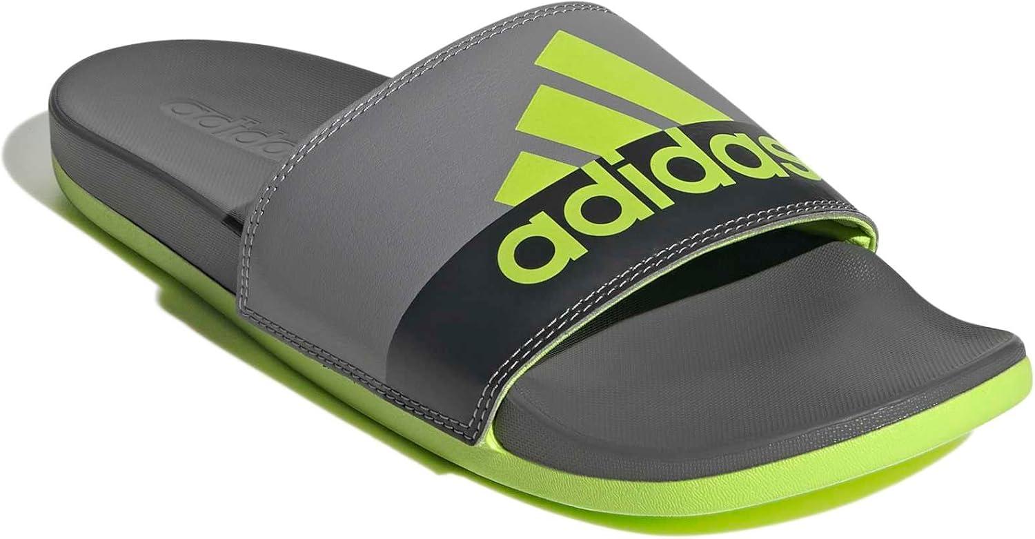 adidas Mens Adilette Comfort Slide Casual Sandals Casual – White(Grey/Semi Solar Slime/Semi Solar Slime)