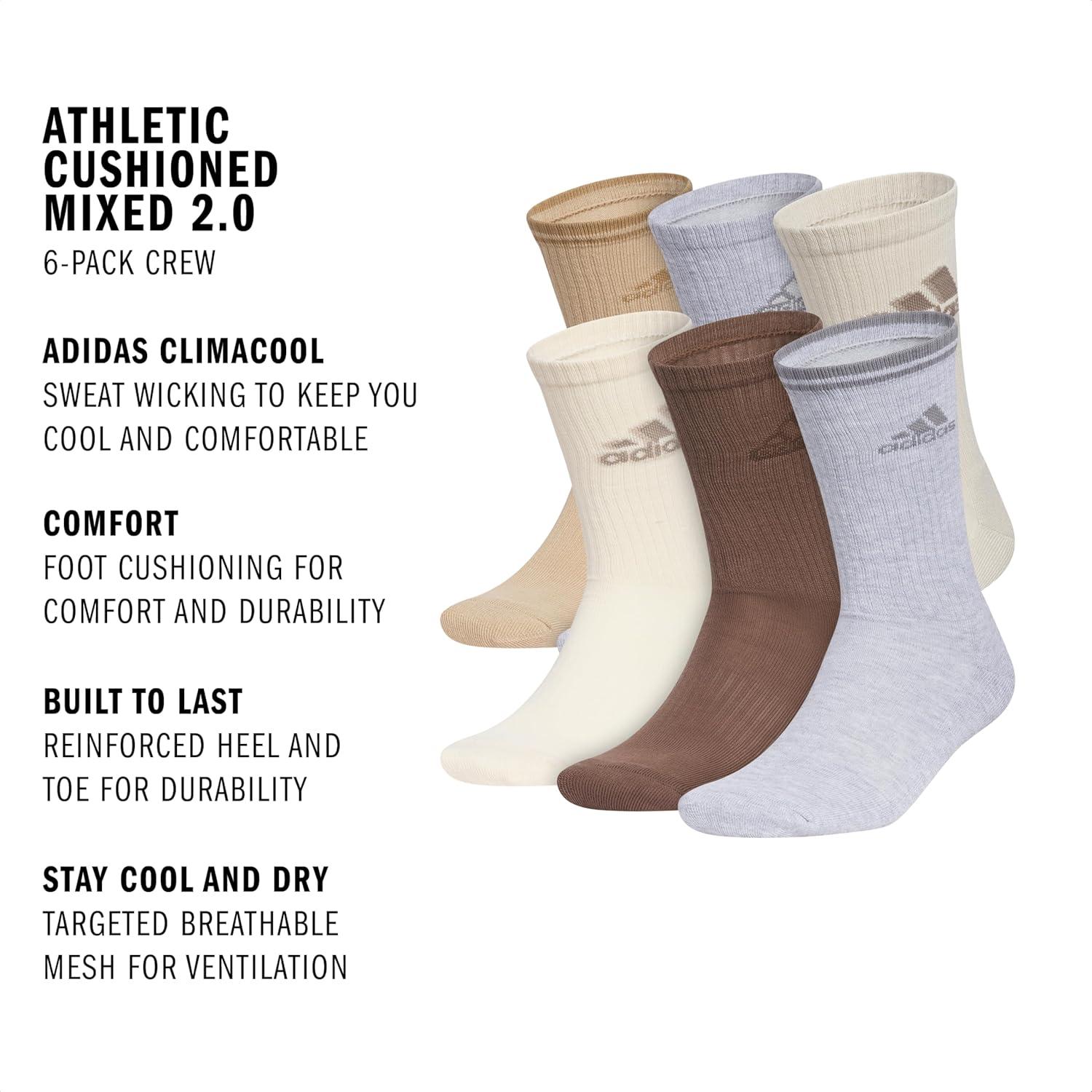 adidas Men’s Athletic Cushioned 6-Pack Crew, Cushioned Crew Socks with Arch Compression for a Secure Fit(Warm Sandstone Beige/Wonder White/Wonder Alumina Grey/Graphic)