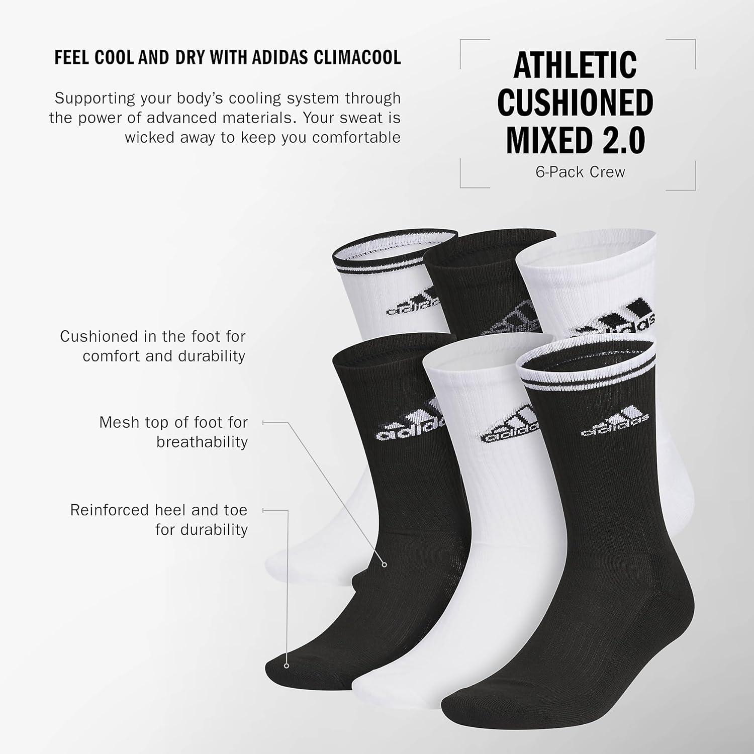 adidas mens Athletic Cushioned Crew Socks With Arch Compression for a Secure Fit (6-pair)(White/Black/Graphic)