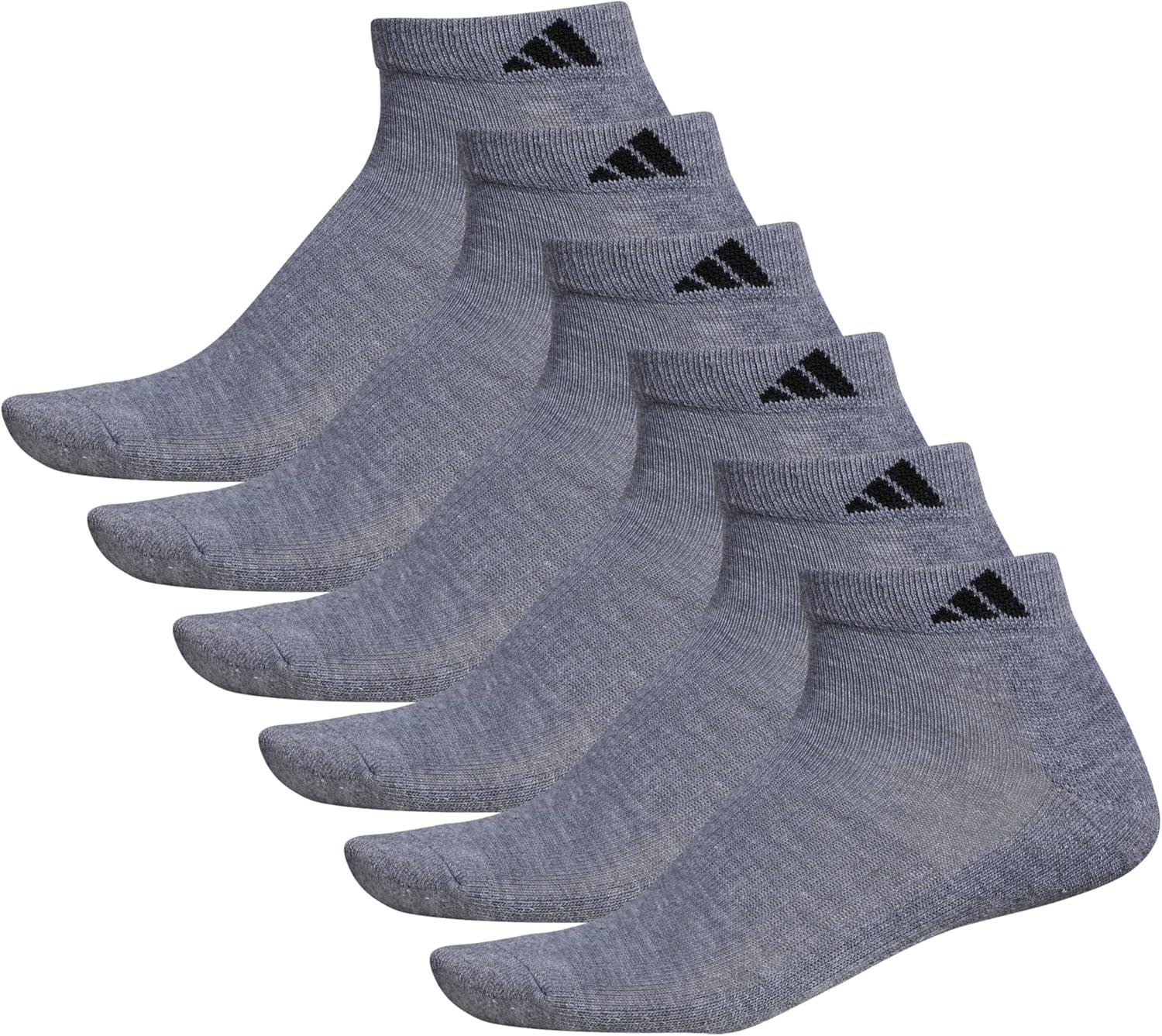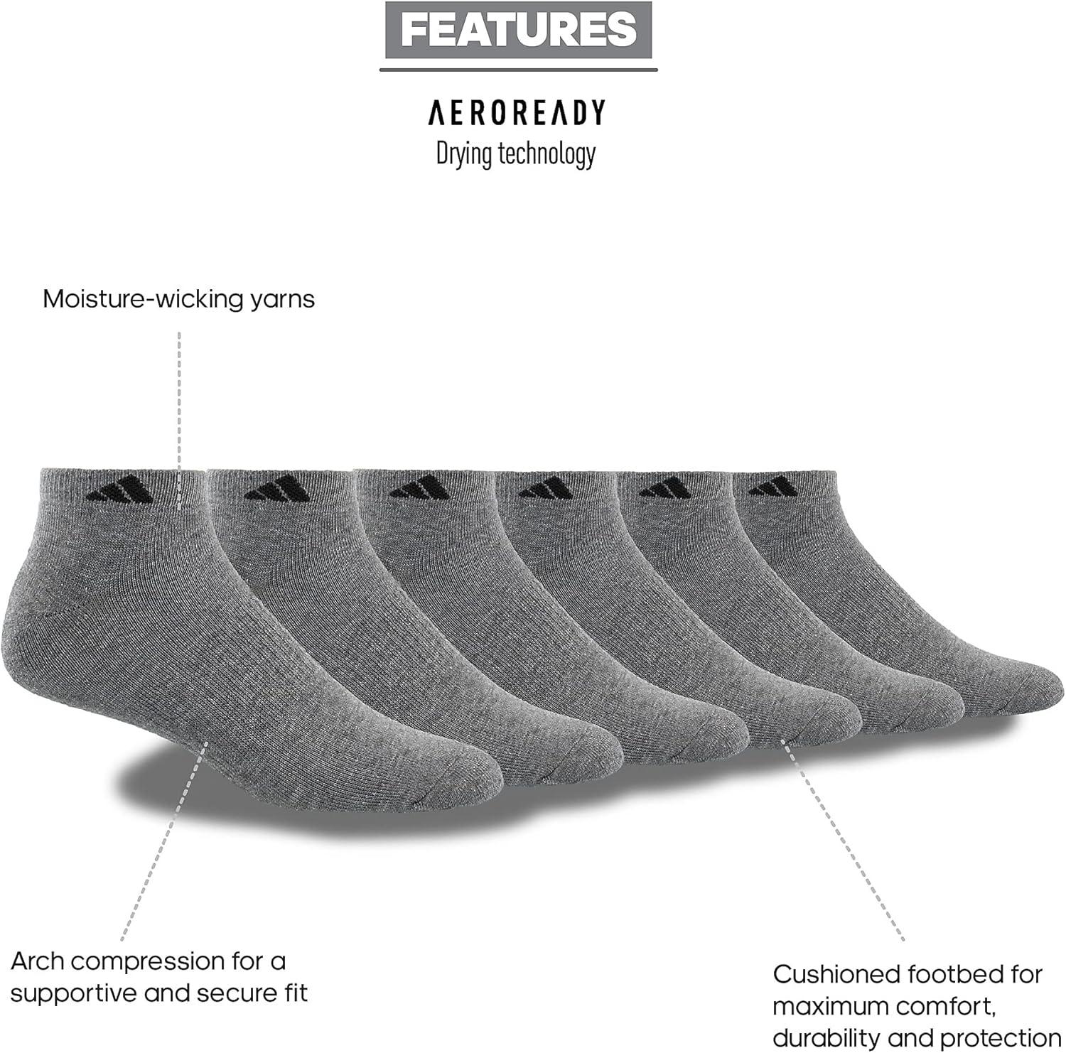 adidas Men’s Athletic Cushioned Low Cut Ankle Socks (6-Pair Pack)(Heather Grey/Black)