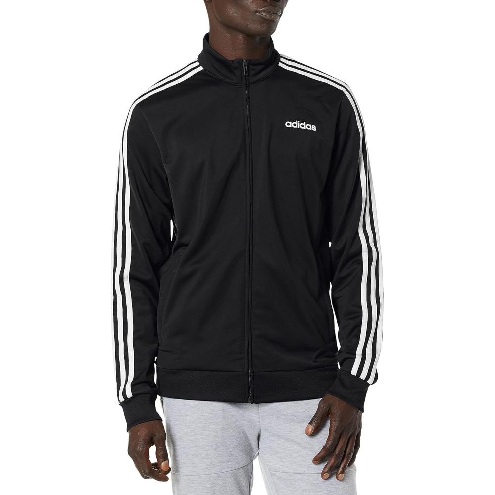 adidas mens Athletics Essential Tricot 3-stripes Jacket(Black/White)