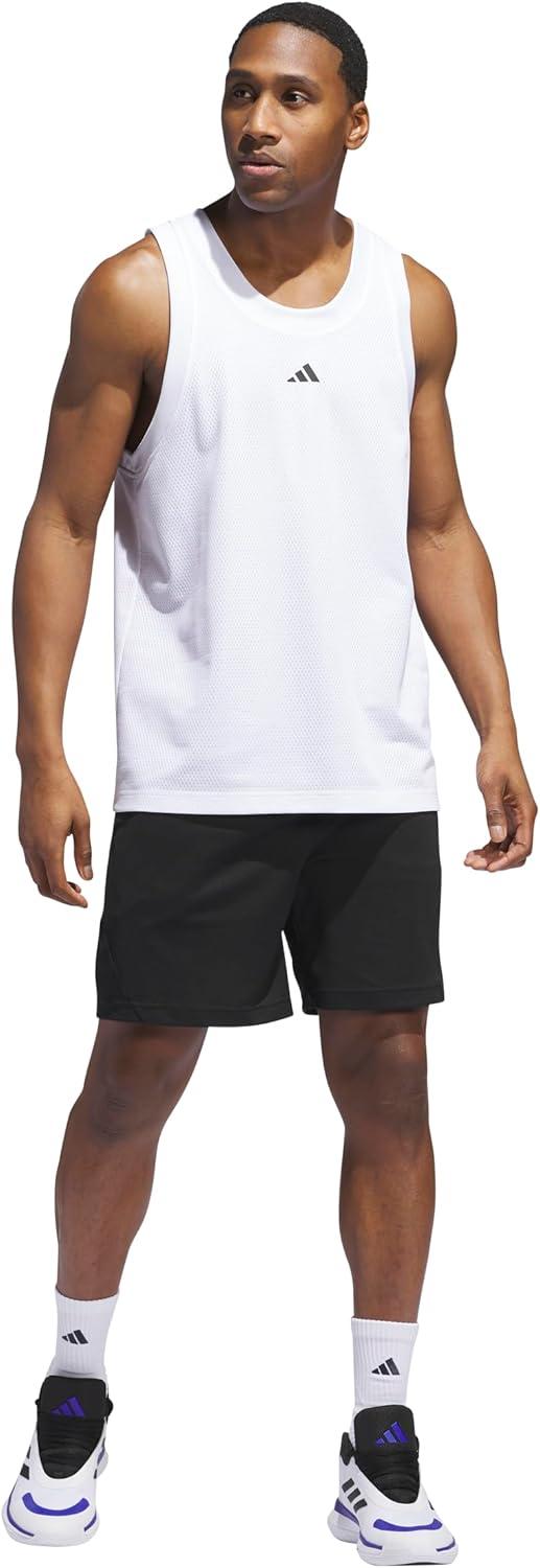 Designed for players who change directions on a dime, these men's shorts are made of recycled polyester and cut for a slim fit that stays close to your body. They feature an elastic waistband and V-notch hems for increased flexibility as you attack the paint.
