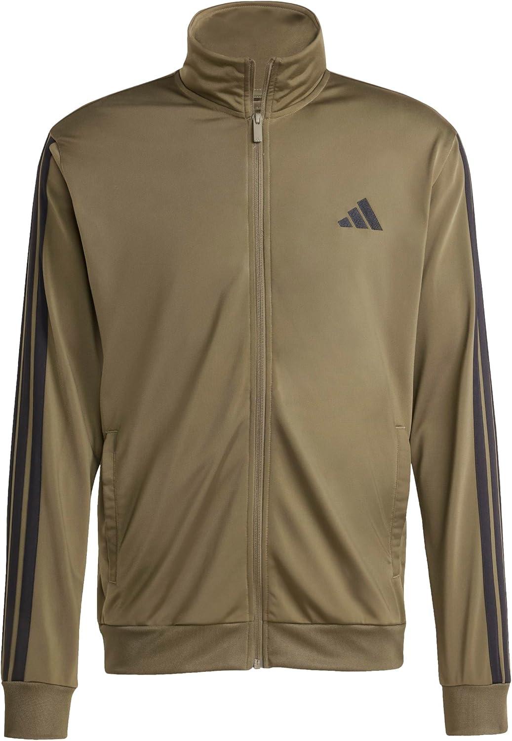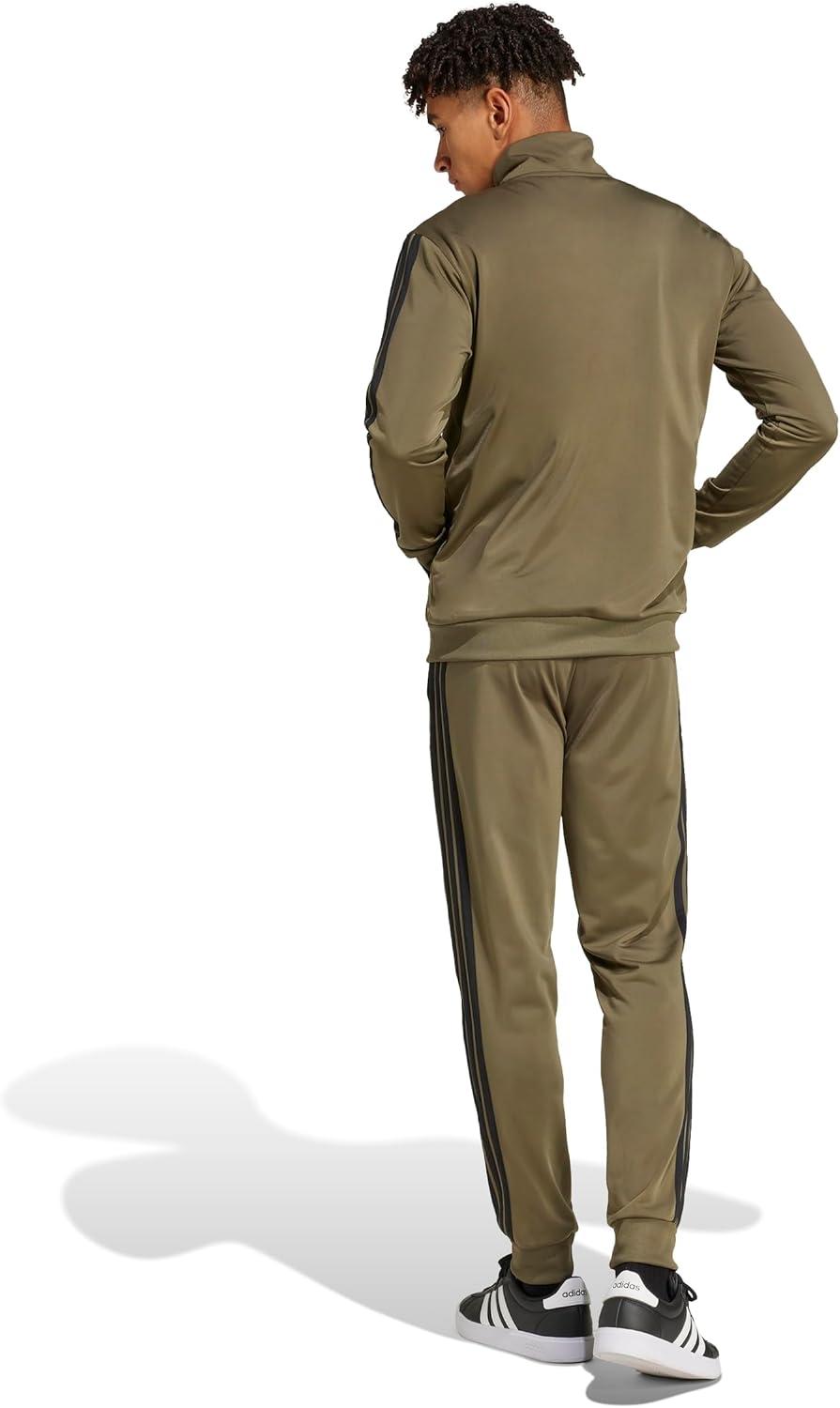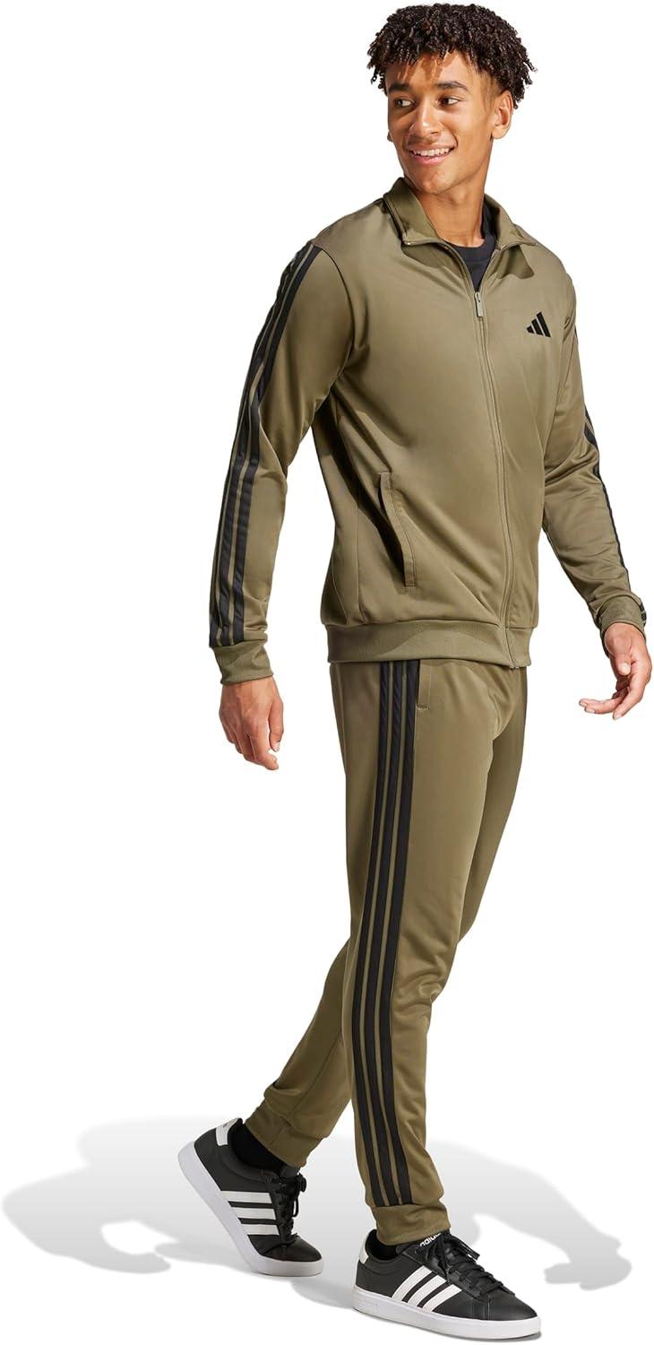adidas mens Basic 3-stripes Tricot Track Suit(Olive Strata)