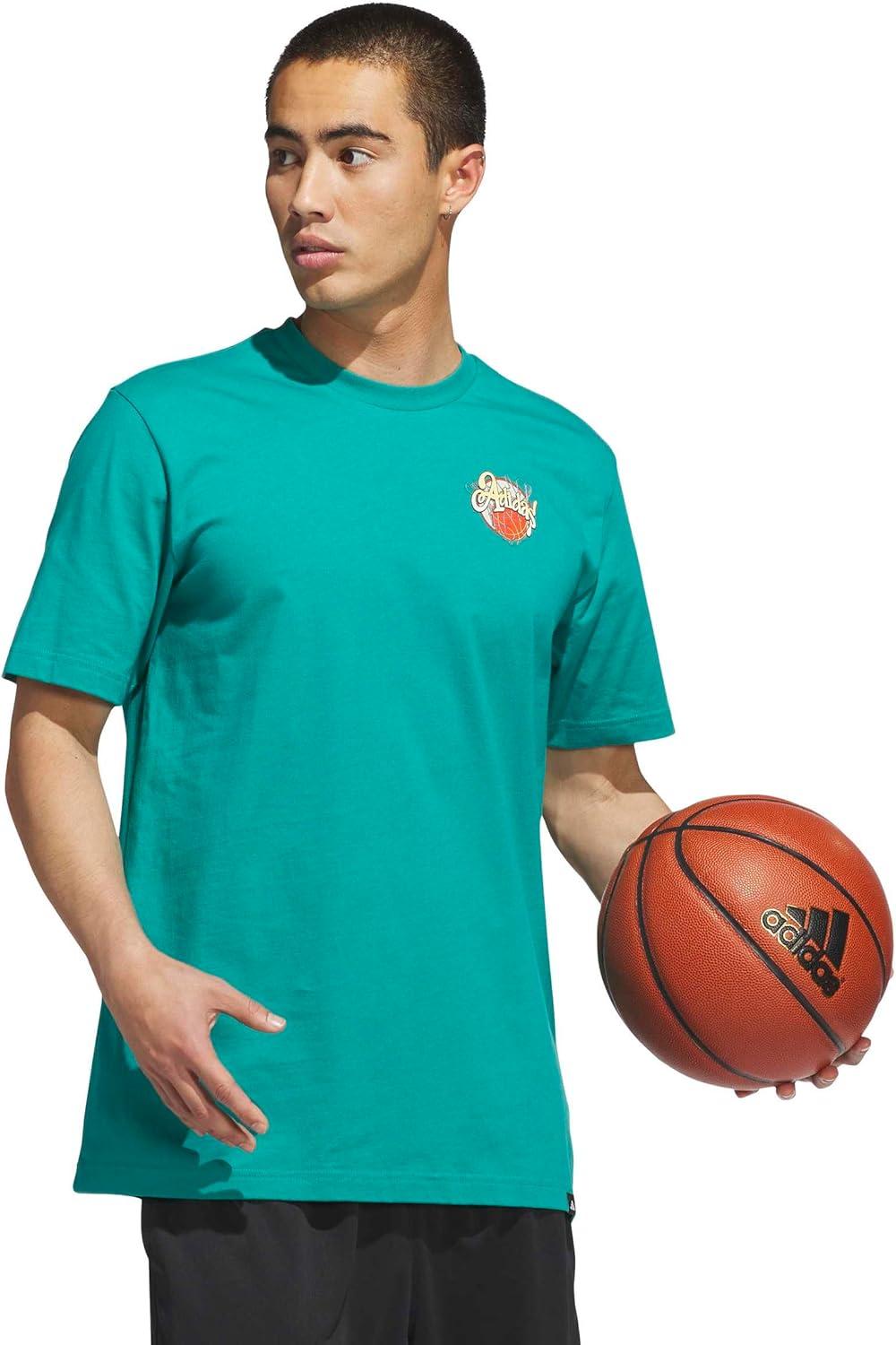 adidas Mens Basketball Graphic T-Shirt(Pure Teal/Nothing But Net)