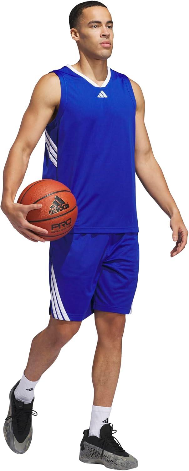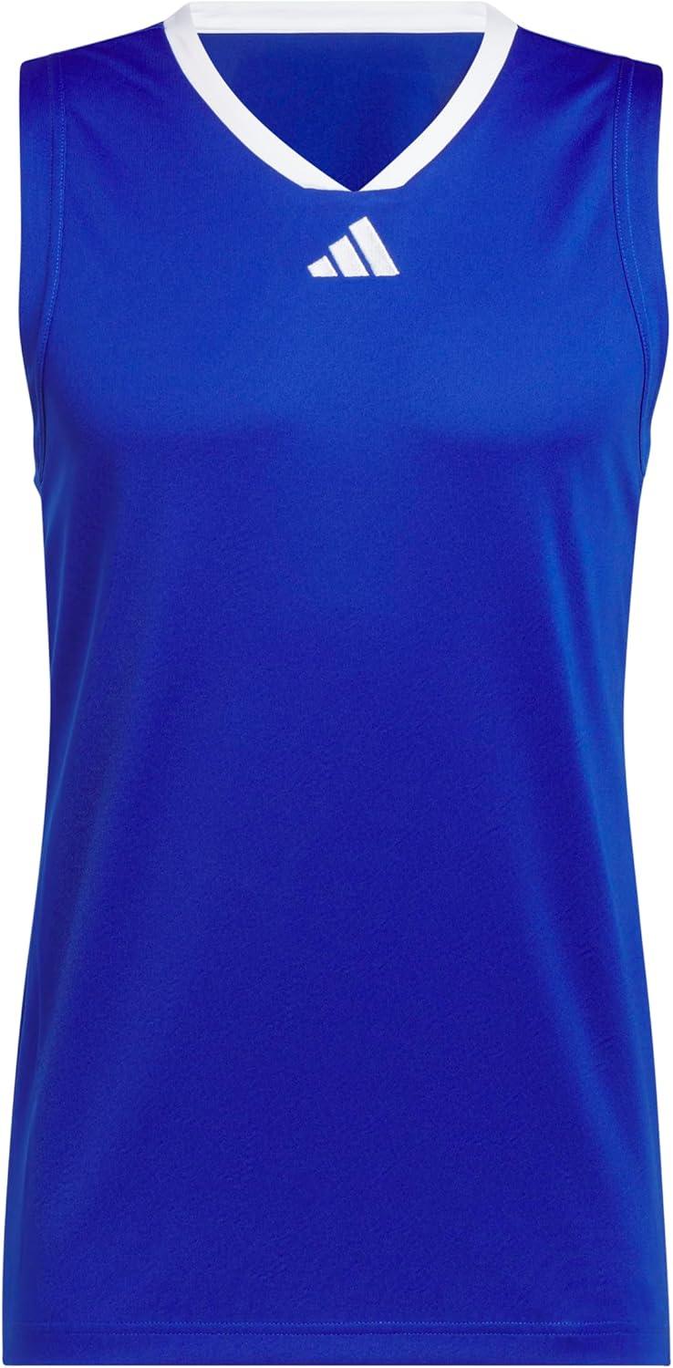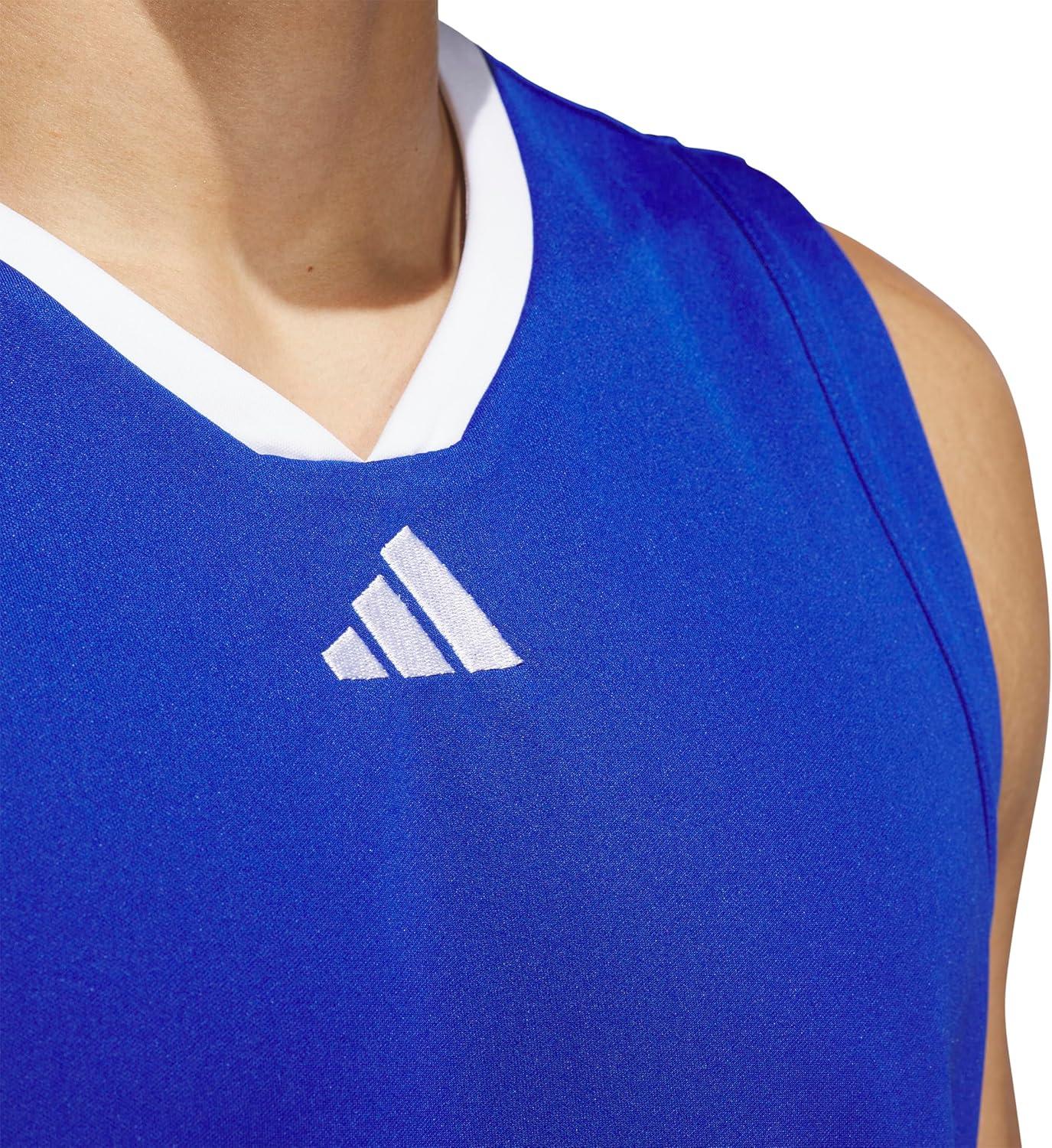 Comfortable and classic so you can dominate on the court. This men's adidas basketball jersey is made with wide armholes and a V-neck for a full range of motion on every jump shot. The 3 Bar Logo front and center and signature 3-Stripes on the sides sign off the look.