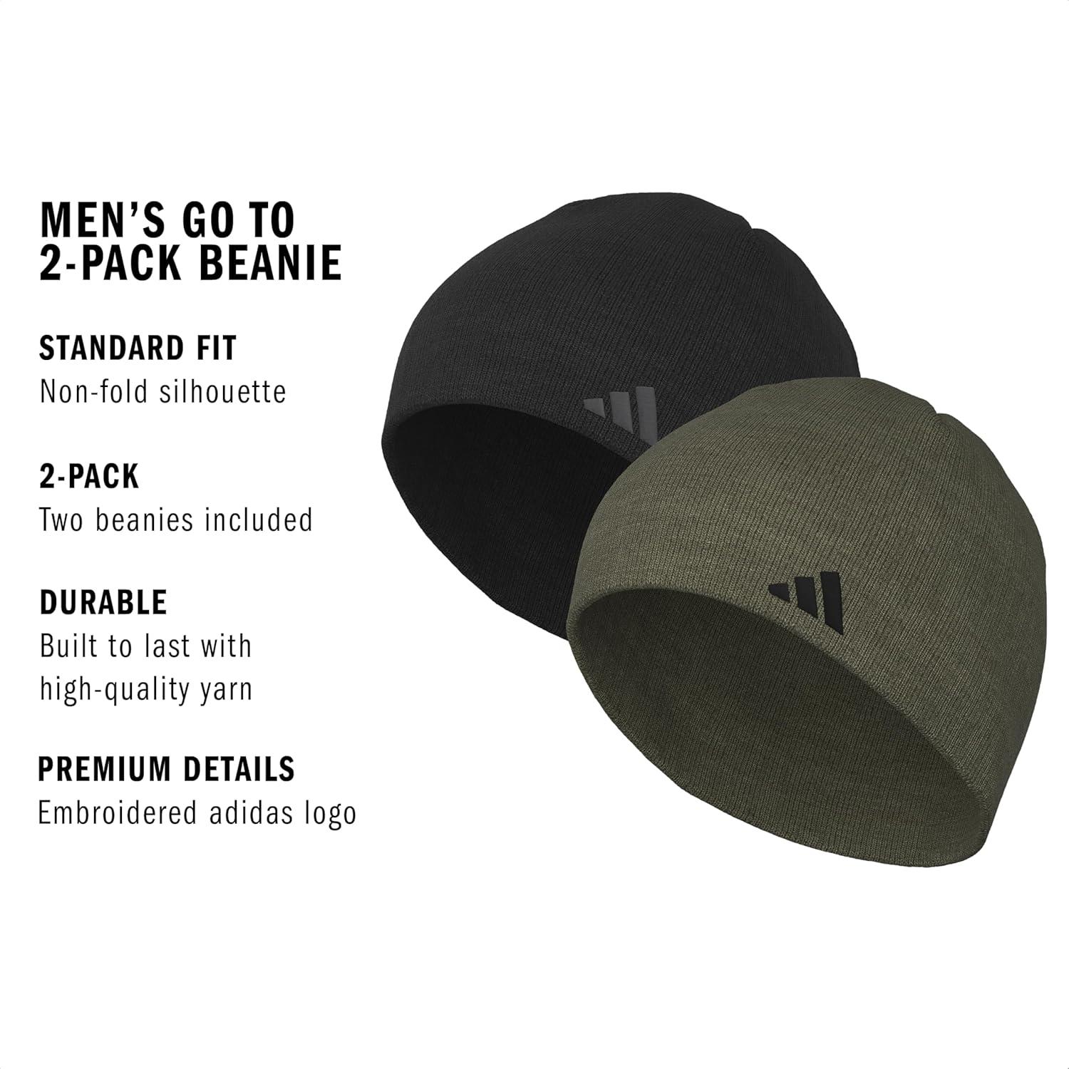 Adidas Men’s Beanie 2-Pack – Standard Fit Winter Knit Hat Skull Cap(Black/Grey Six/Olive Strata Green Black)
