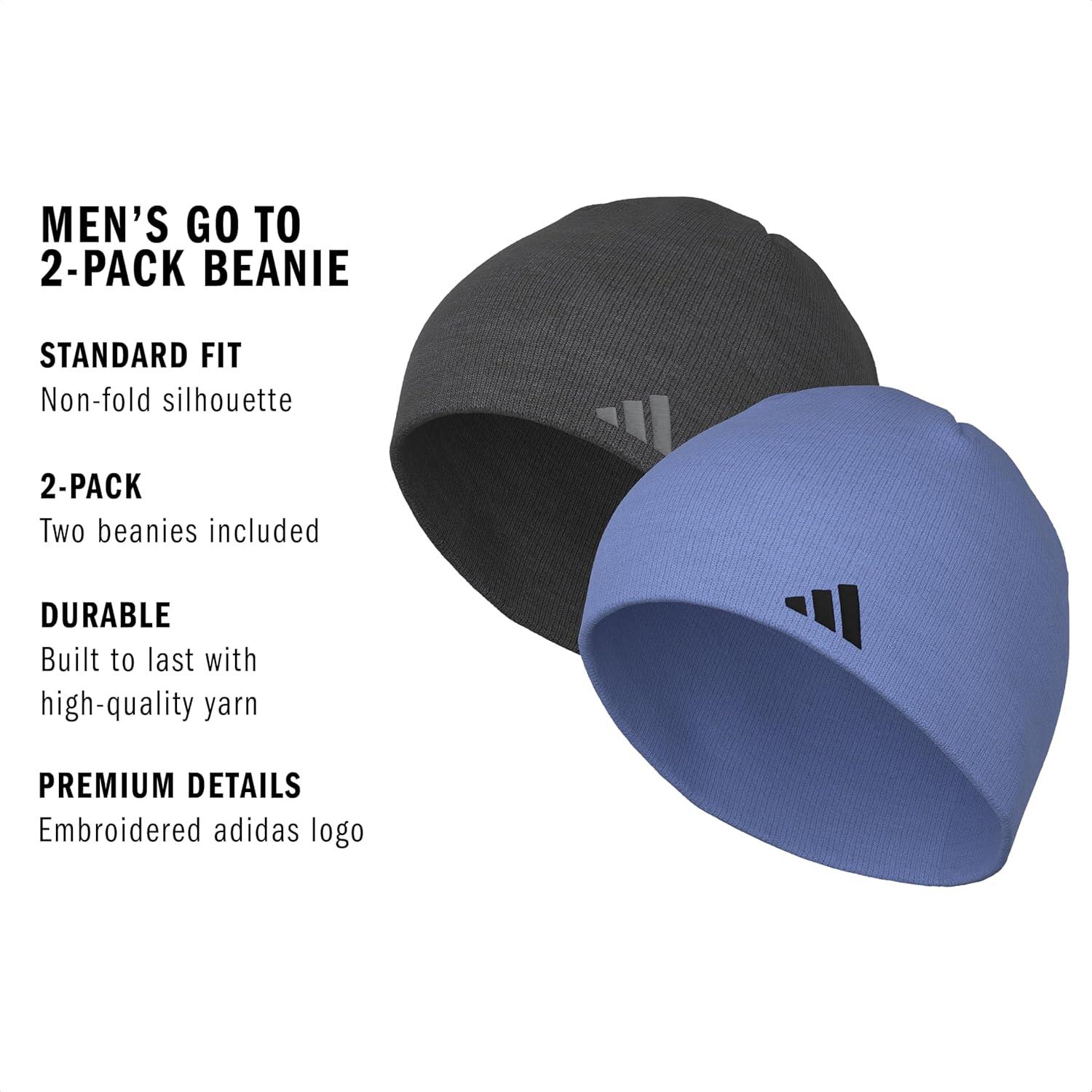 Adidas Men’s Beanie 2-Pack – Standard Fit Winter Knit Hat Skull Cap(Grey Six/Grey Three/Blue Fusion Black)