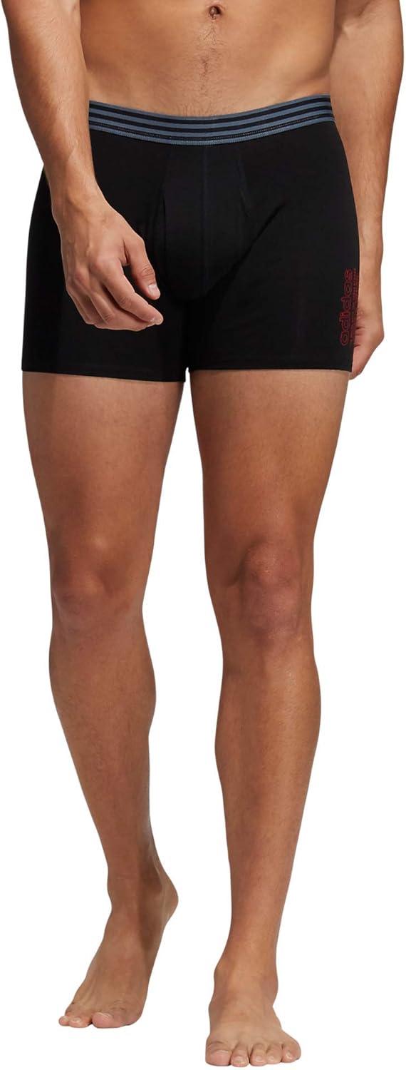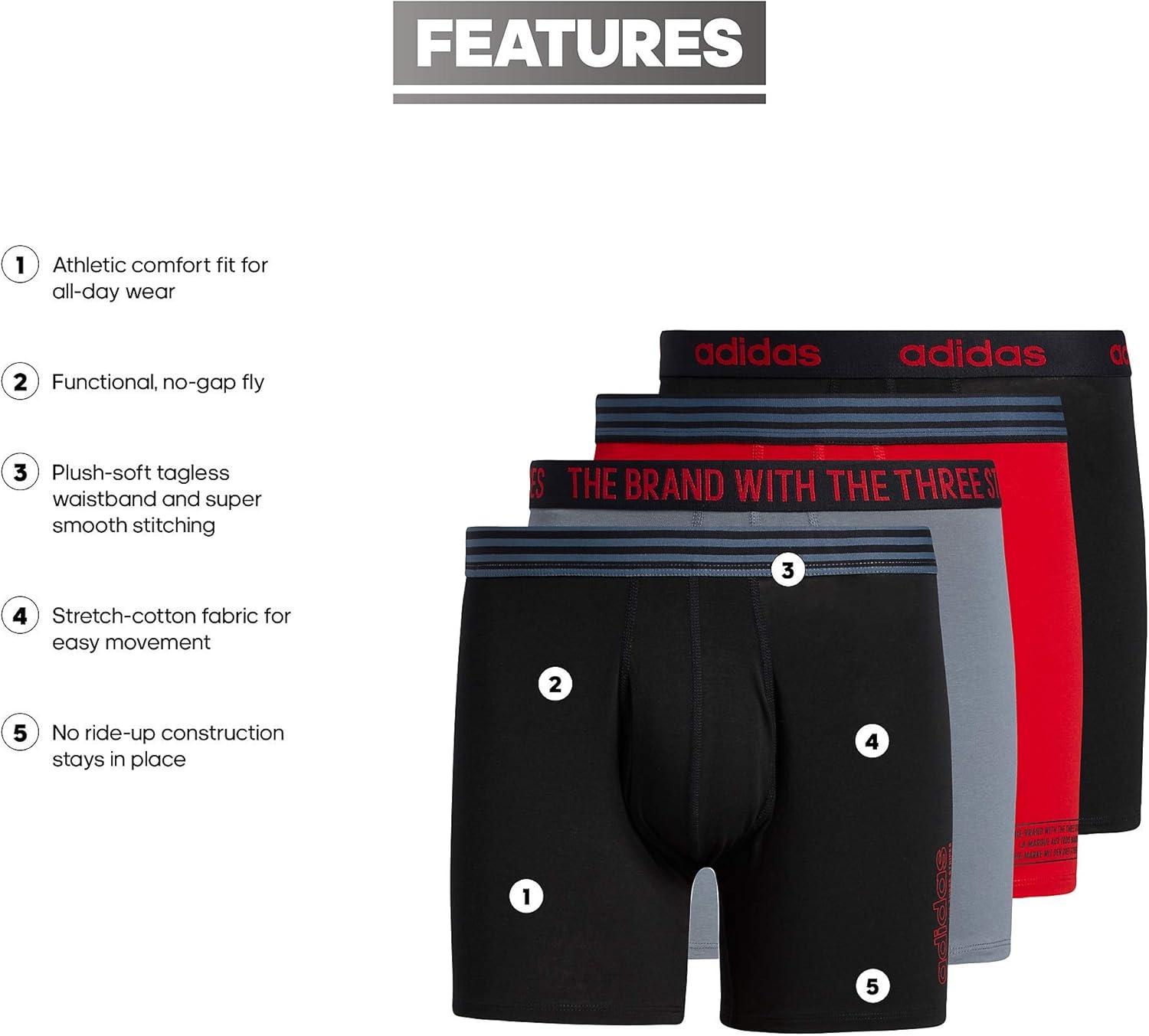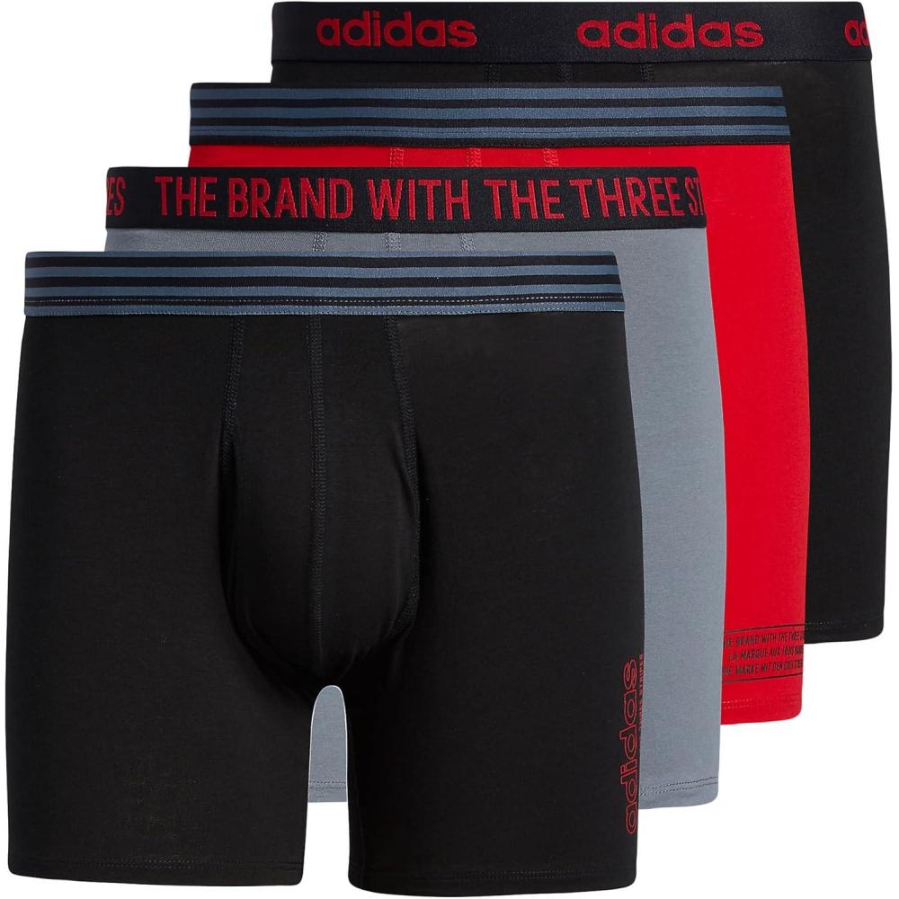 adidas Men’s Core Stretch Cotton Boxer Brief Underwear 4-Pack(Black/Power Red/Onix Grey)
