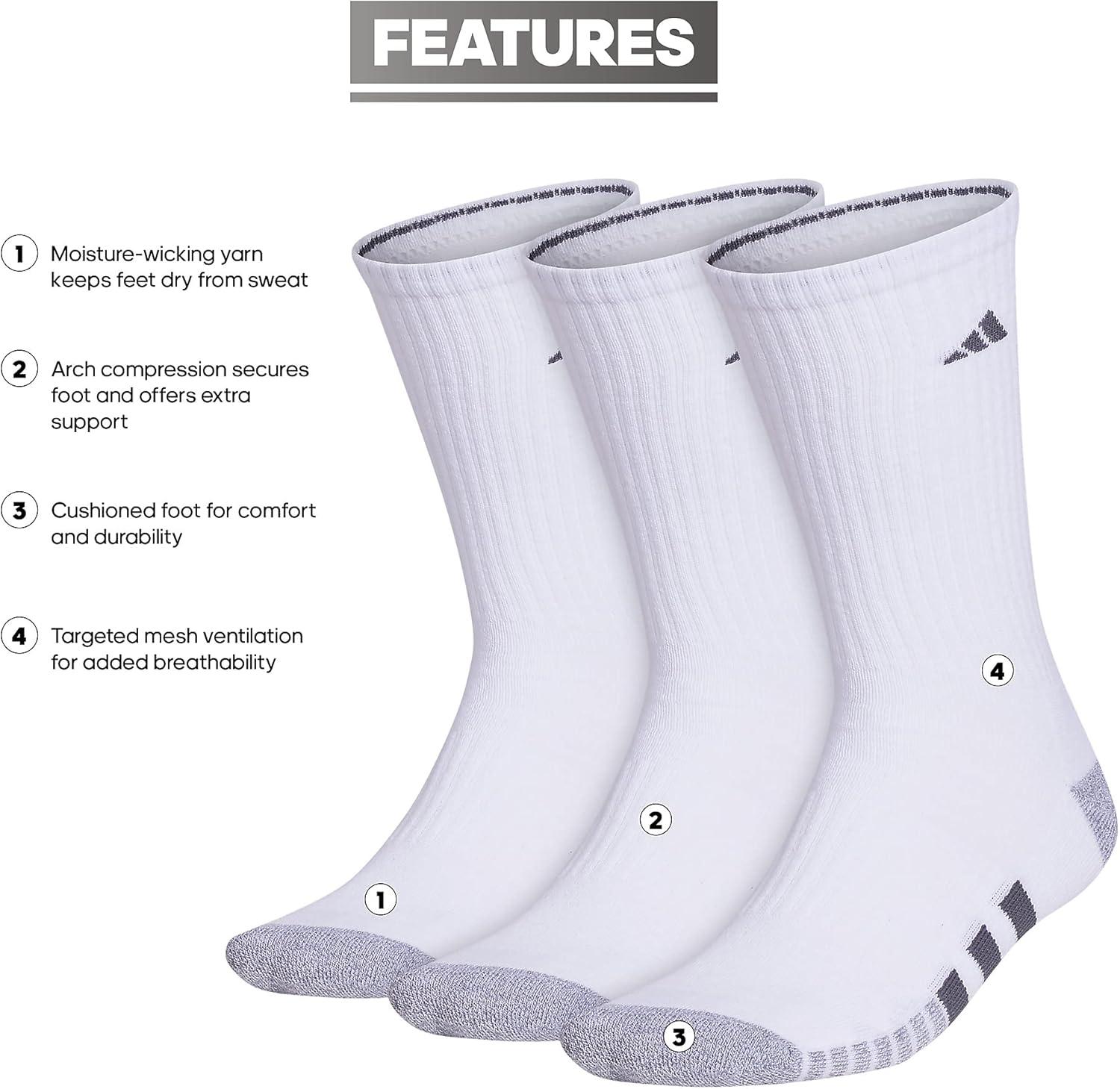 adidas Men’s Crew Socks 3-Pack – Cushioned for Workout(White/Grey/Onix Grey)