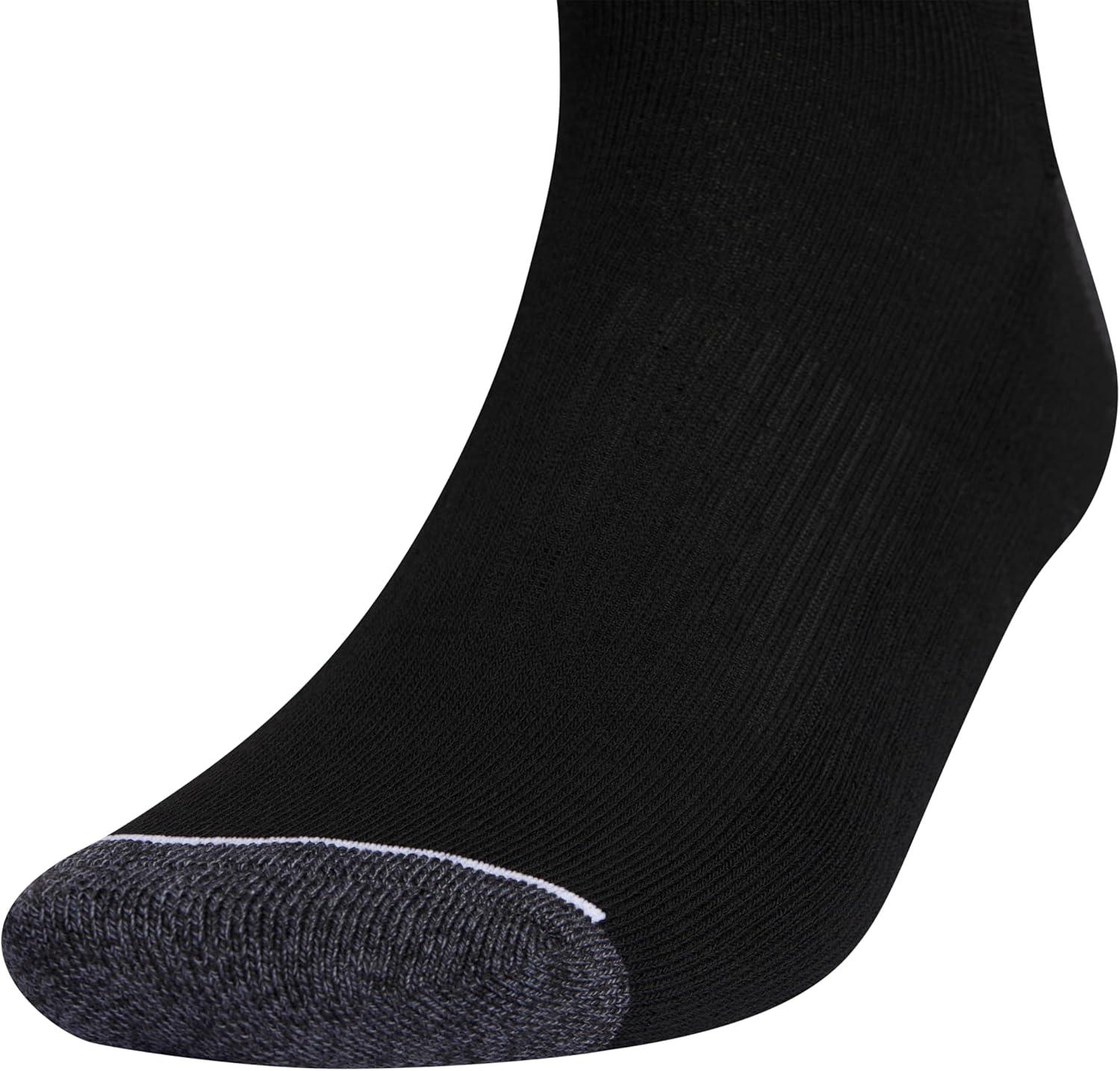 A smart addition to your sock drawer. These crew-length adidas socks are the kind you'll reach for often. Made from moisture-wicking yarn, they keep feet dry while wrapping snugly around the arch. The cushioned footbed helps protect high-impact areas.