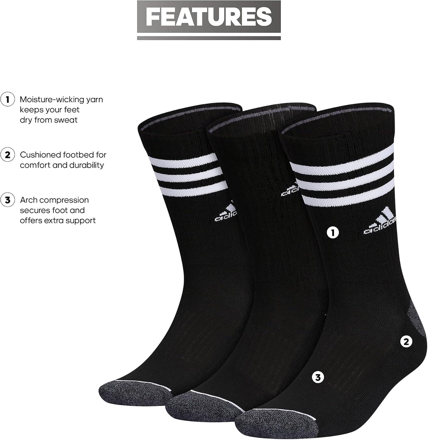 adidas Men’s Crew Socks 3-Pack with Logo or Striped(Black/Onix Grey/White/3s 3.0)