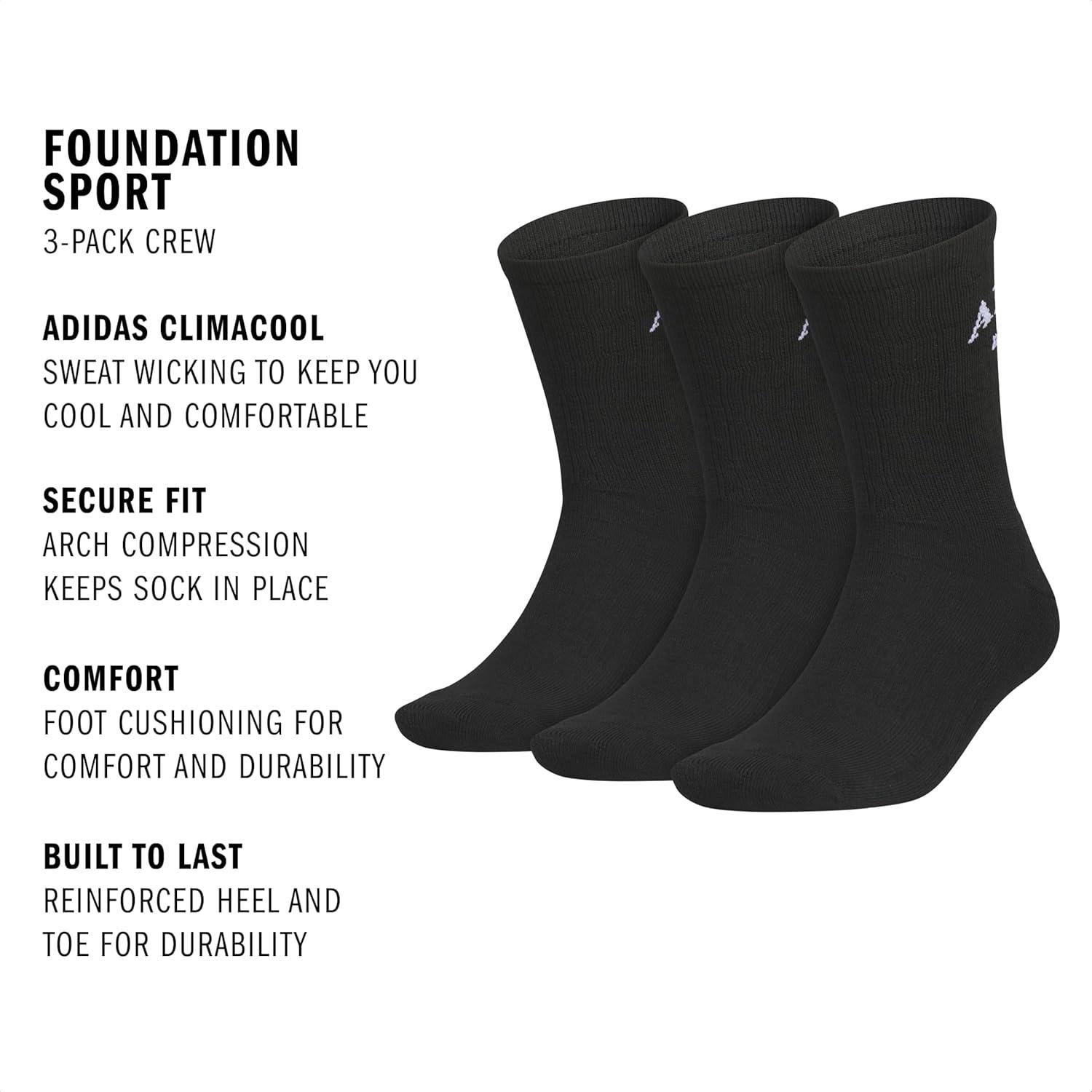 adidas Men’s Crew Socks 3-Pack with Logo or Striped(Black/White/Foundation)