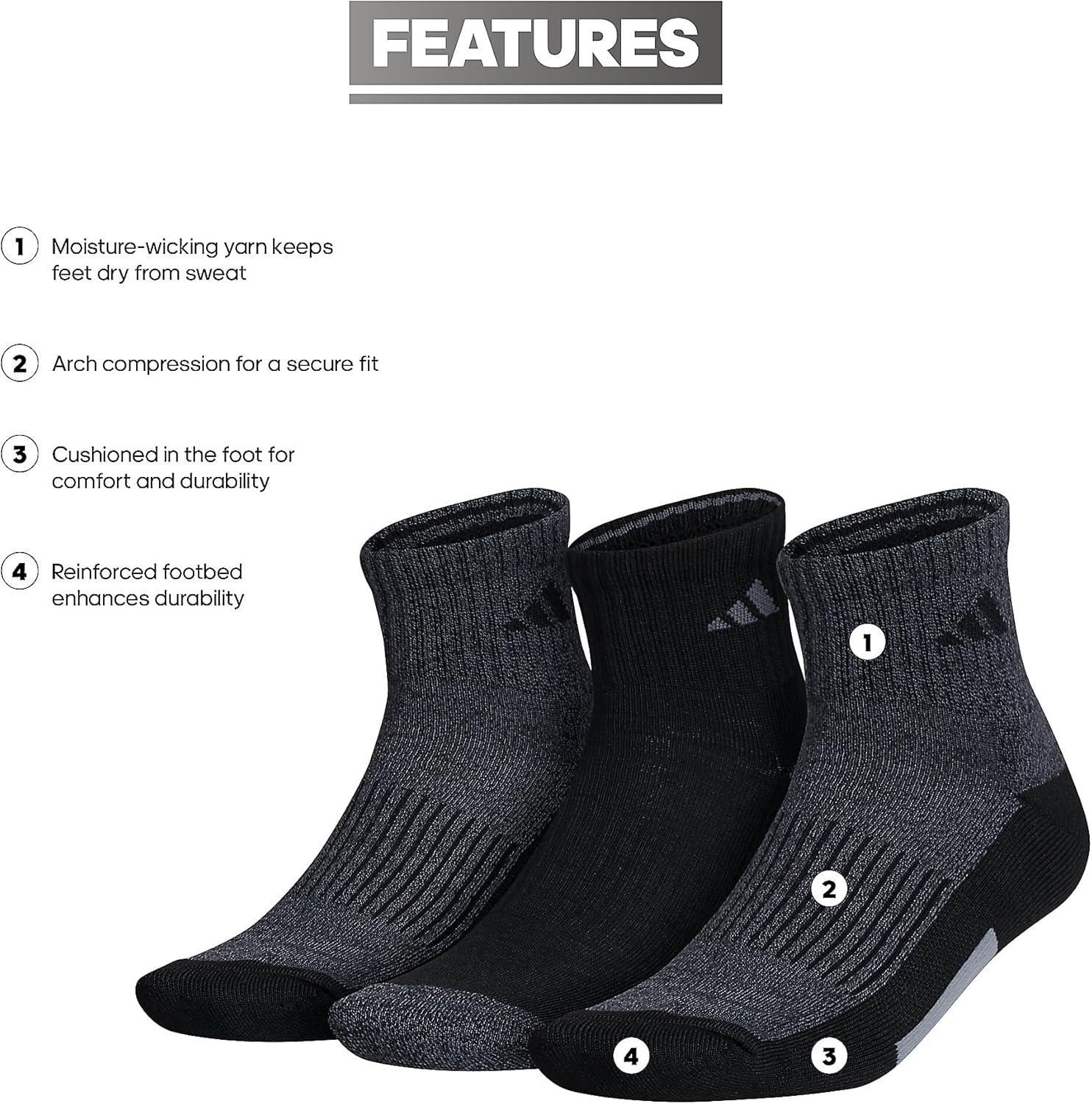 adidas Men’s Cushioned 3.0 Color 3-Pair Pack Quarter DISCONTINUED(Black/Onix Grey/Grey)