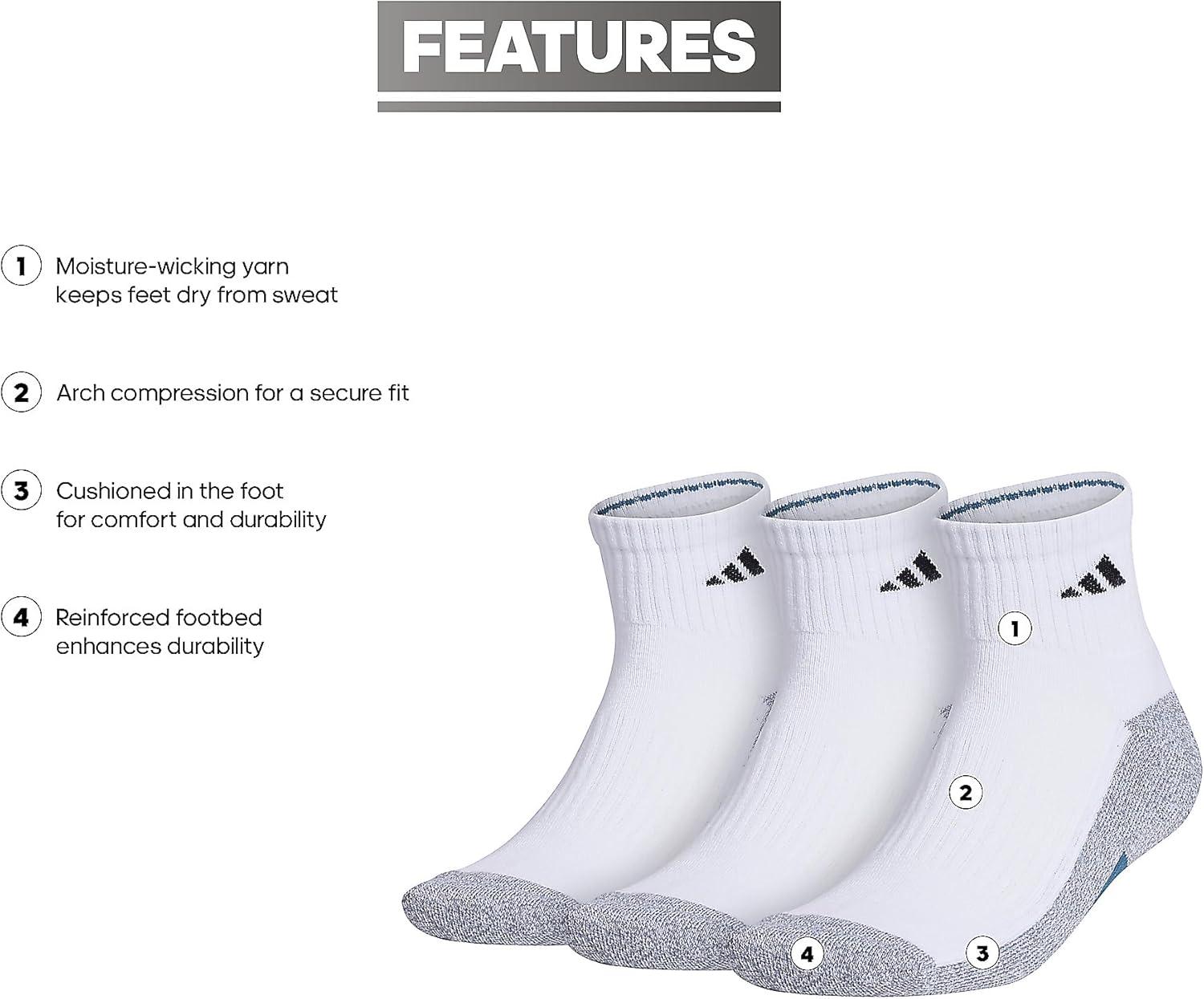 adidas Men’s Cushioned 3.0 Color 3-Pair Pack Quarter DISCONTINUED(White/Grey/Orbit Indigo Blue)