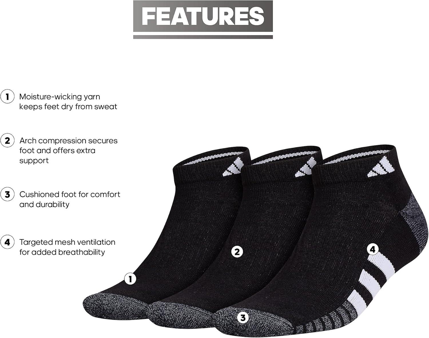adidas mens Cushioned Low Cut Socks (3-pair)(Black/Onix Grey/White)
