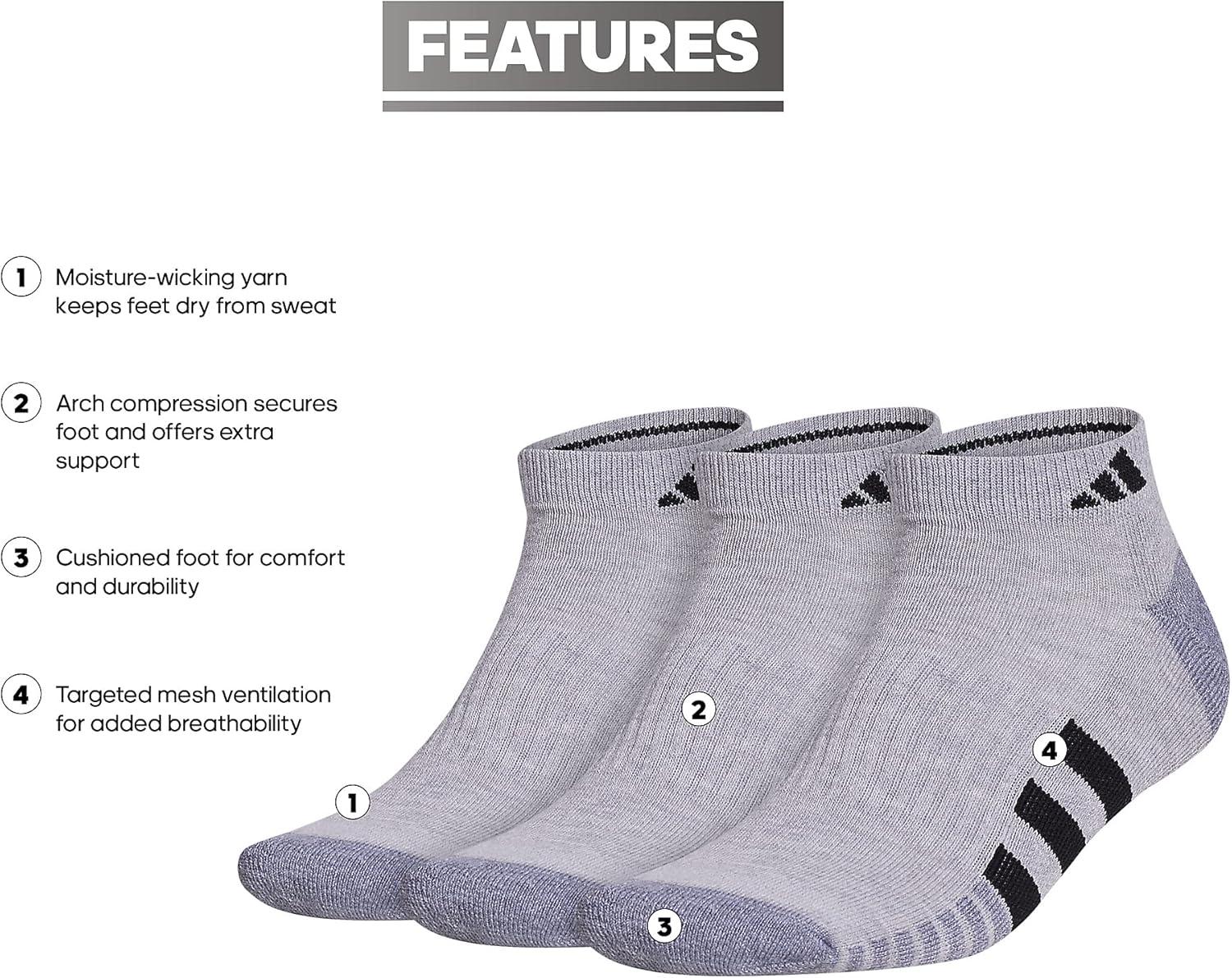 adidas mens Cushioned Low Cut Socks (3-pair)(Cool Light Heather/Grey/Black)