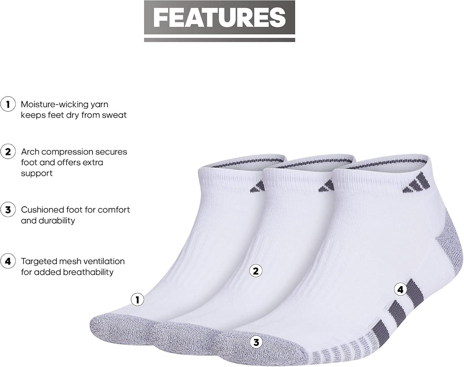 adidas mens Cushioned Low Cut Socks (3-pair)(White/Grey/Onix Grey)